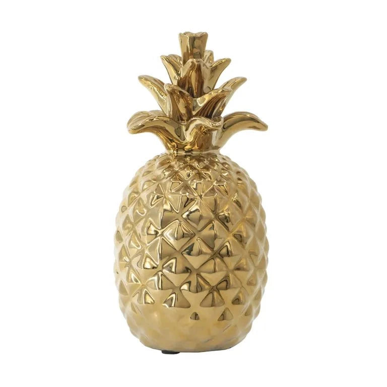 Add a touch of modern luxury to your home or office space with our stunning 23cm Pineapple Accent. Made of polished gold, this bold geometric piece is perfect for entryway tables, living room mantles, or airy sunrooms. Its dramatic shine will make a stylish statement wherever you choose to display it!