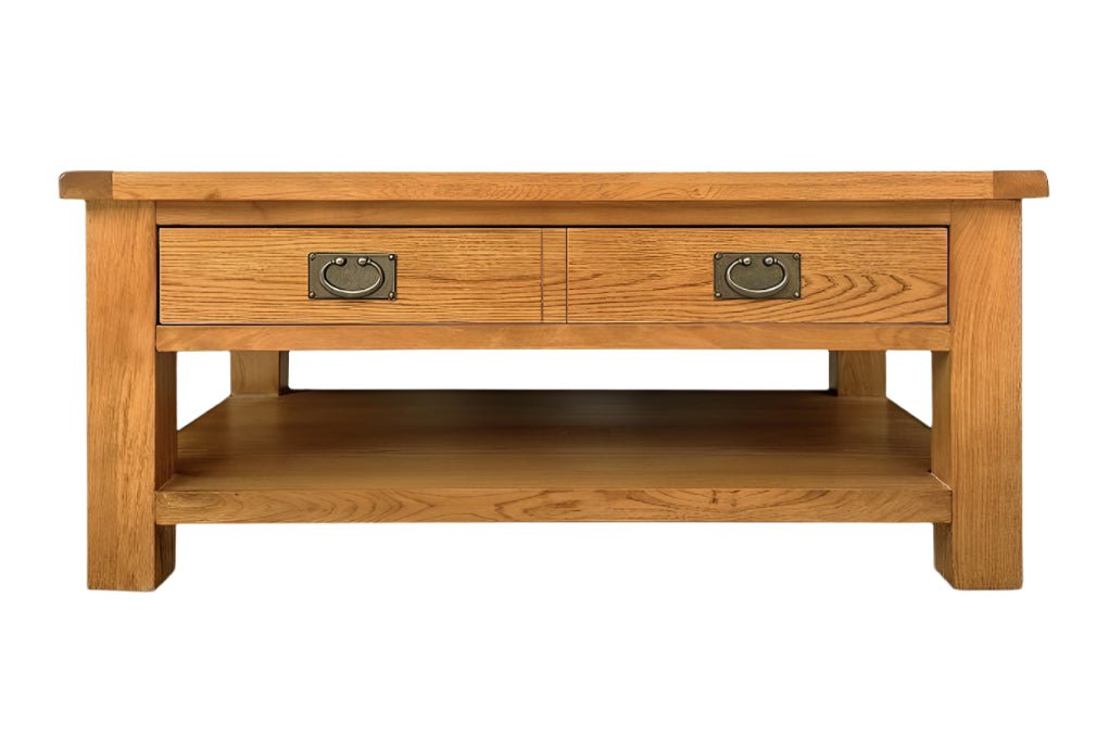 The Kensington Oak Coffee Table combines timeless craftsmanship with elegant design. Made from solid oak with a natural finish, it features one Large drawer. Traditional joinery ensures durability, while hand-waxed protection enhances its rich texture. Black metal handles add a refined contrast, making this piece a sophisticated centerpiece for any living space.