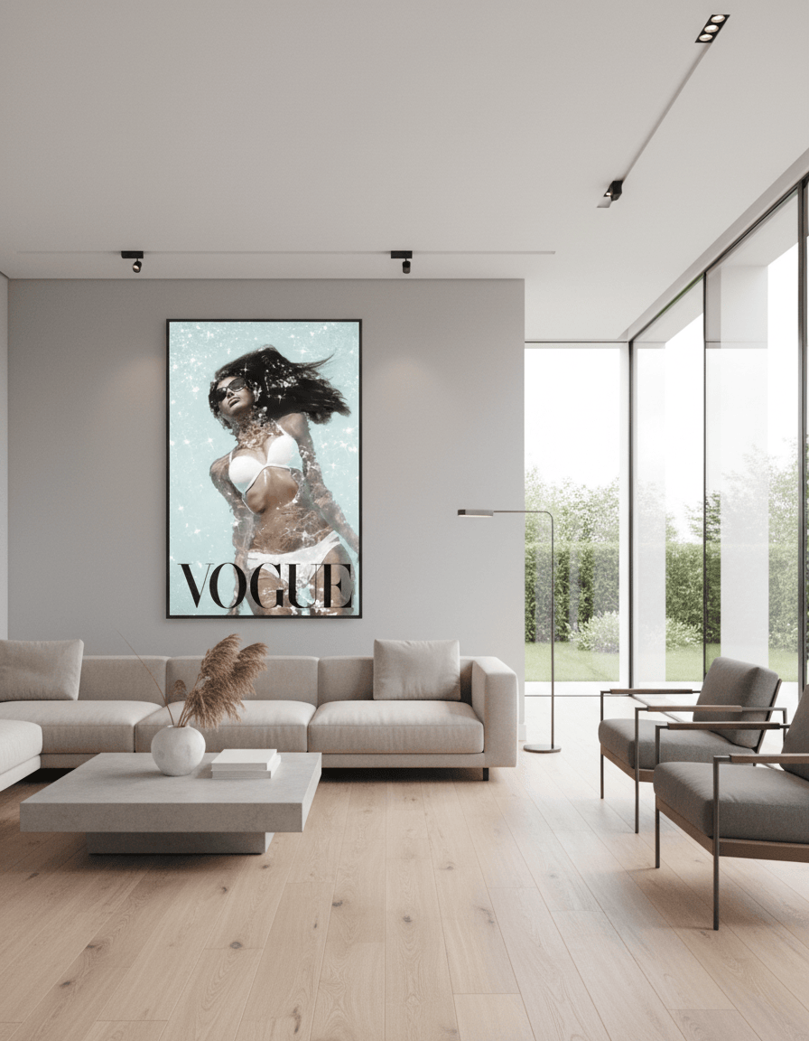 Indulge in the pure luxury of the Bikini Vogue Canvas with Black Frame. This 120X80CM canvas is a sophisticated and exclusive addition to any space. Its black frame adds a touch of elegance, making it a must-have for lovers of art, literature, and fashion. Embrace the beauty and refinement of this exquisite piece.