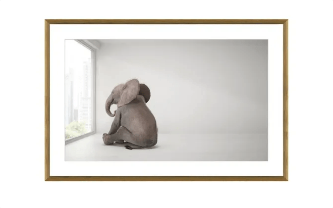 Experience the powerful and peaceful presence of our Elephant Day Dreams Print in Glass. The intricate grey and brown color scheme adds a touch of elegance, while the combination of paper, glass, and PS frame ensures durability. Let this print transport you to a world of tranquility and wonder.