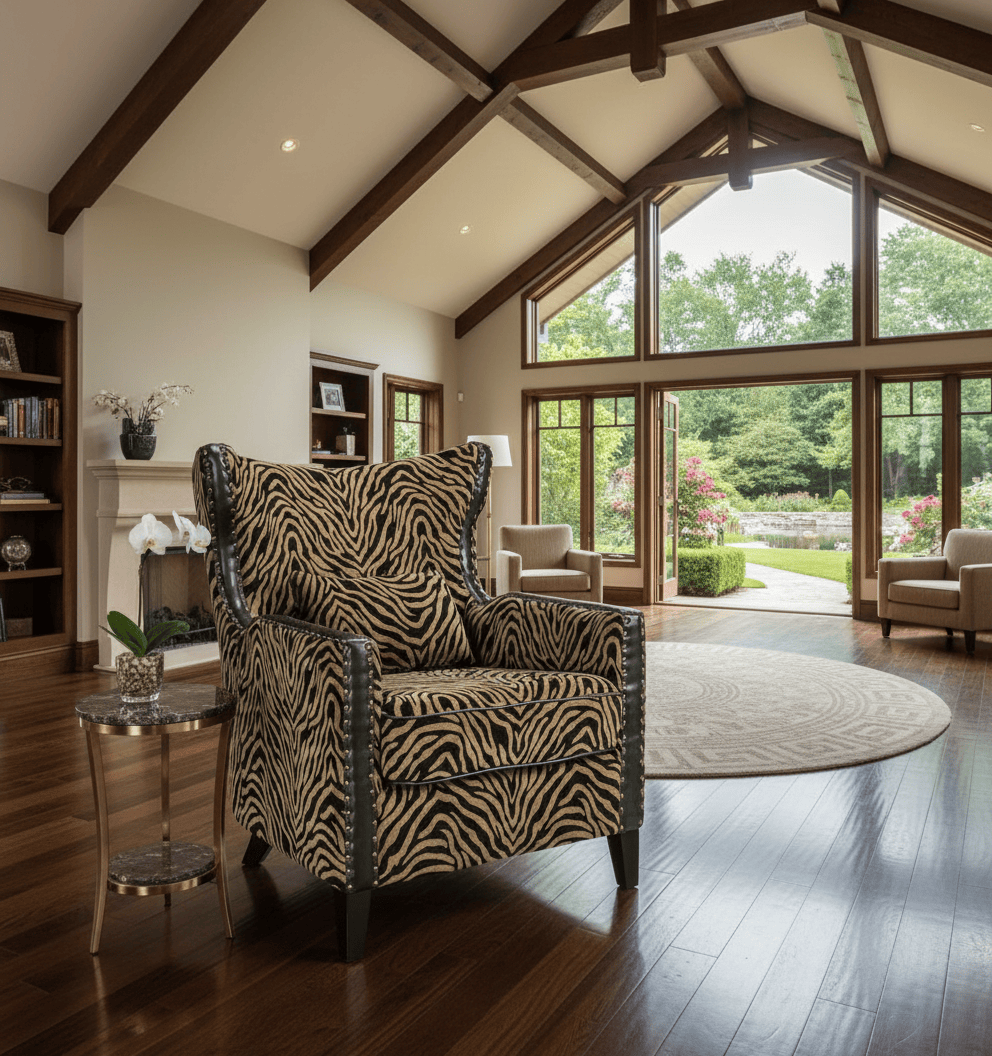 Unleash your bold and vibrant style with the Instinct Occasional Chair in striking zebra print! Upholstered in luxuriously soft printed chenille, this statement piece brings indulgence and flair to any room. The sleek brass nail detailing adds a refined edge, while the solid timber frame ensures strength and durability. This set is designed for comfort, character, and undeniable style.