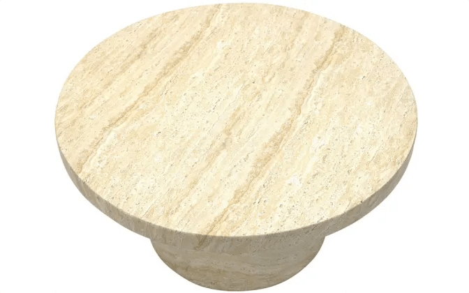 Enhance your living space with the Liss Travertine Look Coffee Table. Crafted from durable MgO with a natural travertine effect, its beige color adds warmth and sophistication. The round top design makes it a perfect addition to any modern or traditional decor. Elevate your coffee moments today!