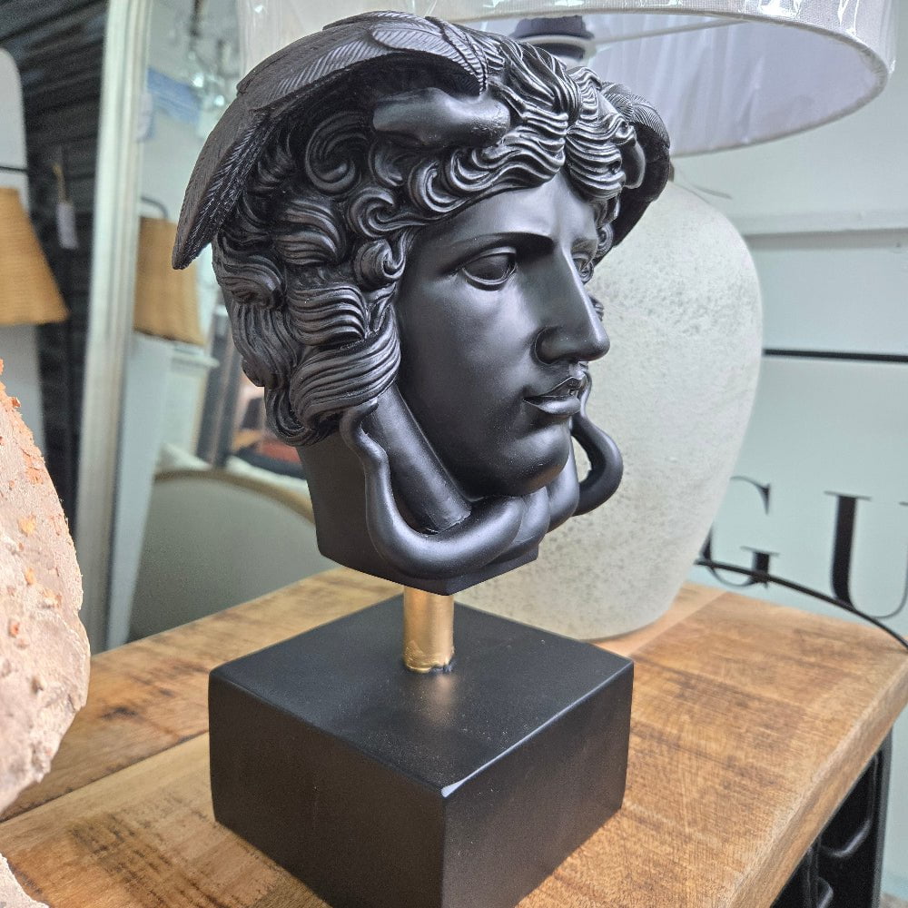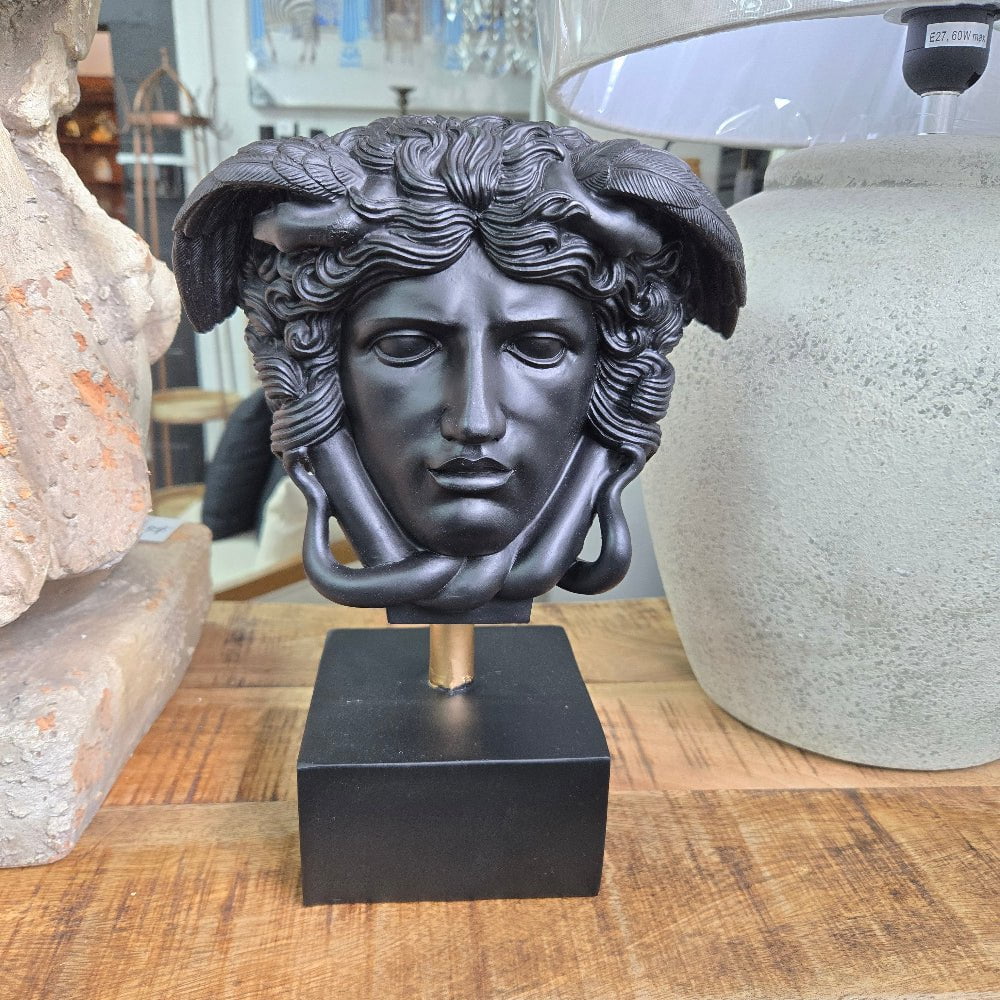 Indulge in the captivating beauty of our Medusa Statue Charcoal. Its stunning blend of charcoal, gold, and black hues will add a touch of sophistication to any space. Crafted from high-quality polyresin, this statue exudes strength and elegance. A must-have for any art lover looking to make a statement.