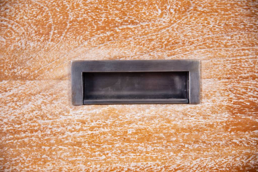 Elevate your living space with our Provincial TV Unit 1700. The French provincial style and sturdy baluster leg create a timeless charm. Crafted from durable mango wood, each piece boasts a unique character with natural grains and knots. Industrial metal corners and recessed handles add a bold touch while the solid drawer boxes and adjustable hinges ensure practicality.