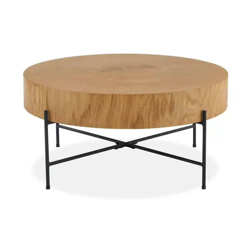 Elevate your living space with the Reflect Disk Coffee Table, featuring a 75 cm natural oak top crafted from MDF with oak veneer. Its sleek metal legs provide sturdy support while adding a modern touch. This table combines refined materials and minimalist design, making it a sophisticated centerpiece for any room.