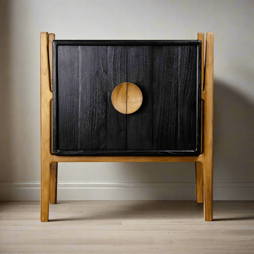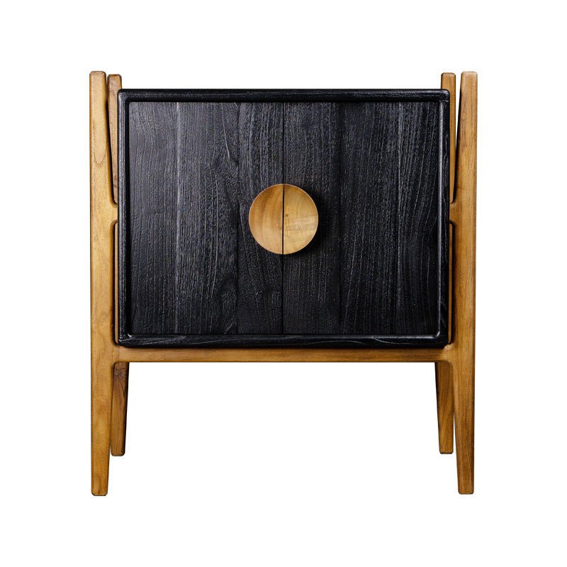 Introducing the Antler 2 Door Side Table, a fusion of art and function. Made from the finest Mindi and Teak wood, this side table exudes sophistication and luxury. The black and natural color combination adds a touch of elegance to any room. Enhance your space with this exclusive piece.