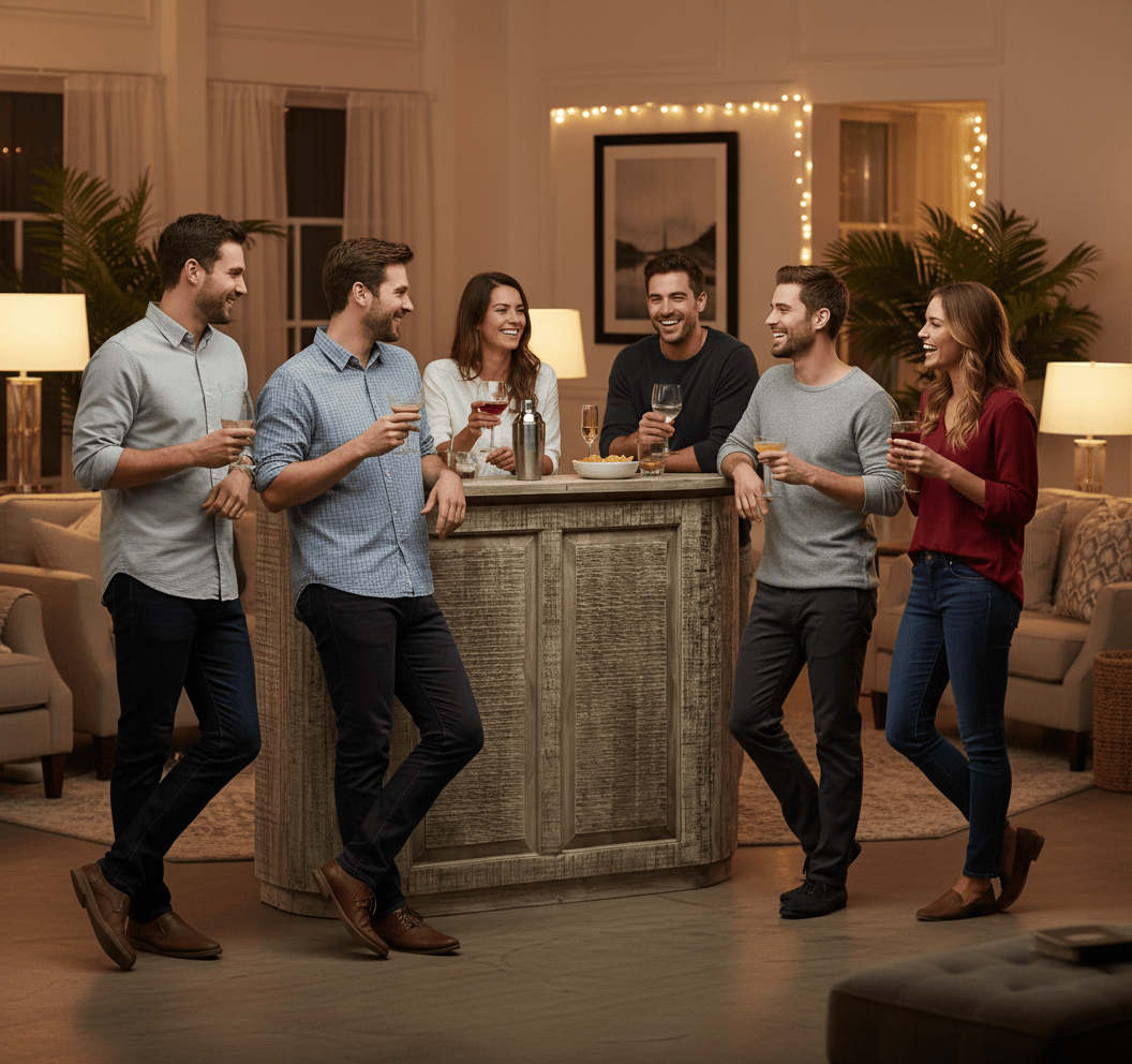 Designed with both style and practicality in mind, it offers ample storage for bottles, glassware, and bar accessories — keeping everything perfectly organized while you entertain in effortless style.