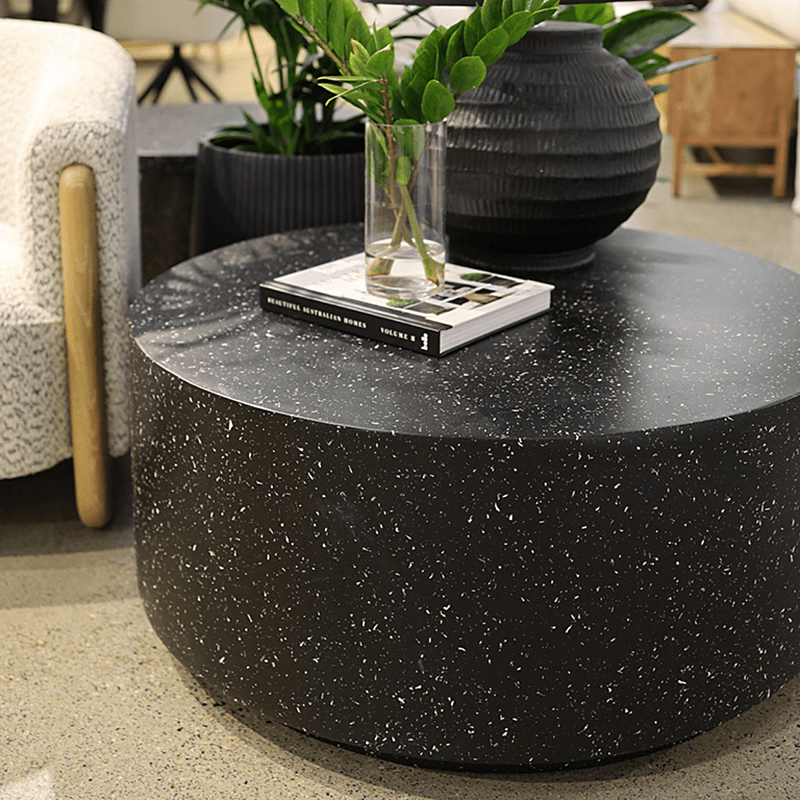 The Theo Round Coffee Table in Black Fleck combines contemporary style with durable MGO material for lasting use. Its sleek rounded design adds a touch of modern elegance to any living space, while the sturdy build ensures stable support for your coffee, books, or décor. Perfect for creating a stylish focal point in your home, this table blends function with eye-catching aesthetics seamlessly.