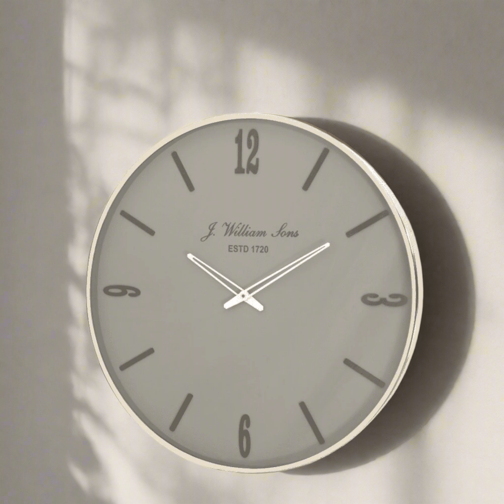 Add a touch of timeless elegance to your home or office with the Williams & Sons Wall Clock. Featuring a sleek nickel frame and a polished finish, this clock seamlessly combines contemporary style and sophistication. Its minimalist design and functionality make it a perfect addition to any interior.