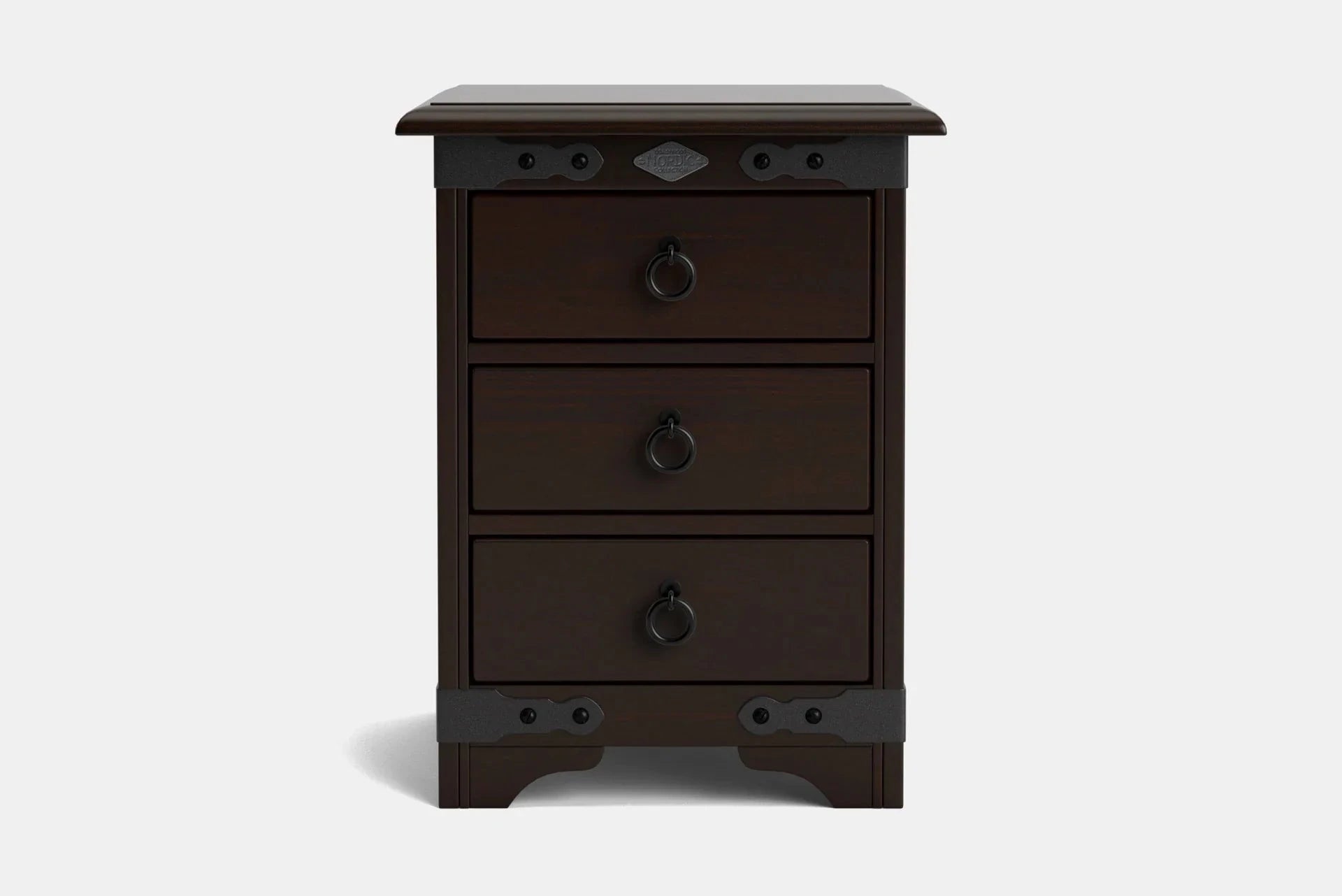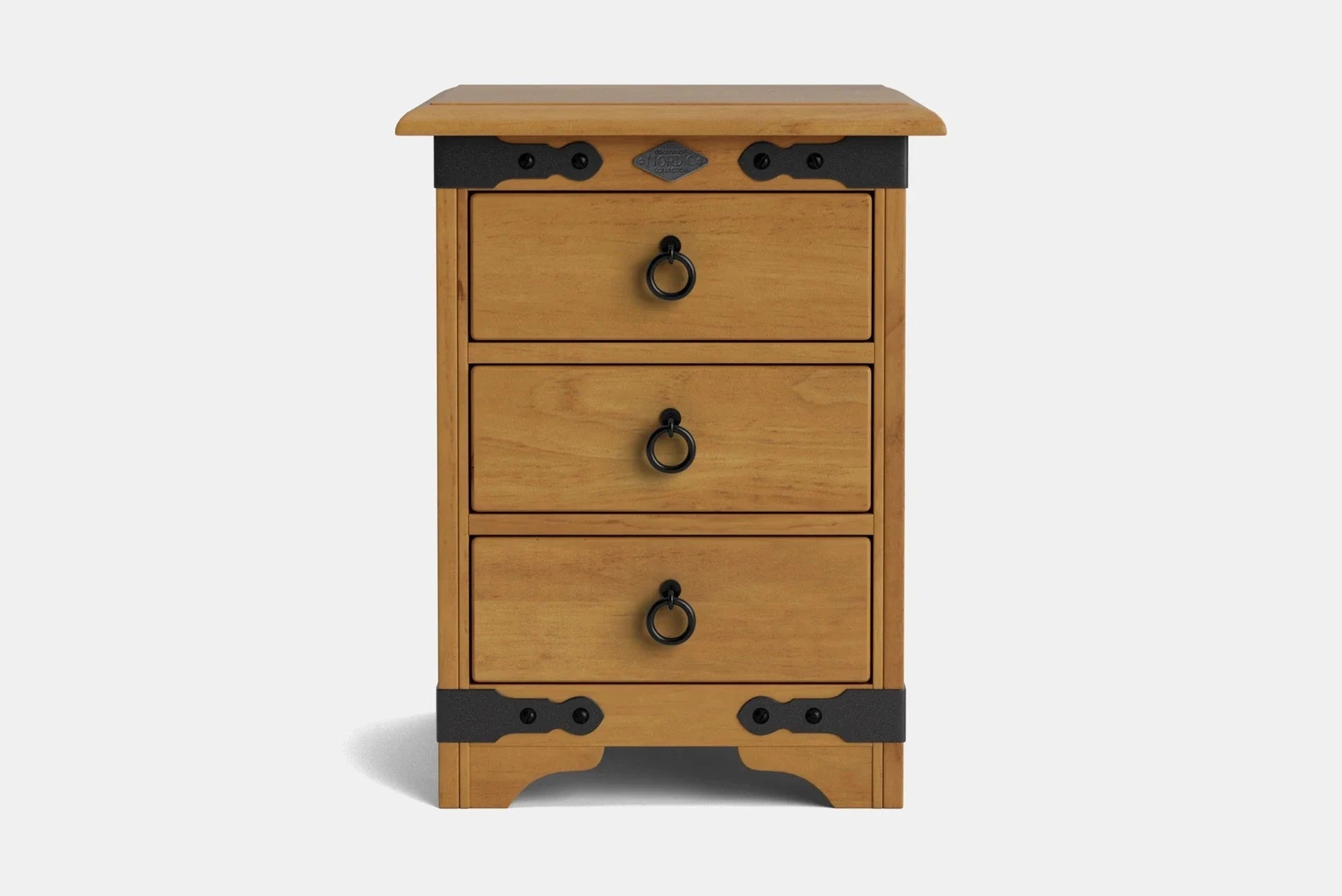 The Nordic 3 Drawer Bedside Table comprises solid Pine timber with a bevelled edge and forged iron trim, resulting in a timeless look that harmonises with traditional interiors. With three dovetailed drawers, your bedside storage will always look attractive. From the initial design, right through to our unique, hand rubbed polishing process, this bedroom table has been crafted to bring enduring quality and style to your home.