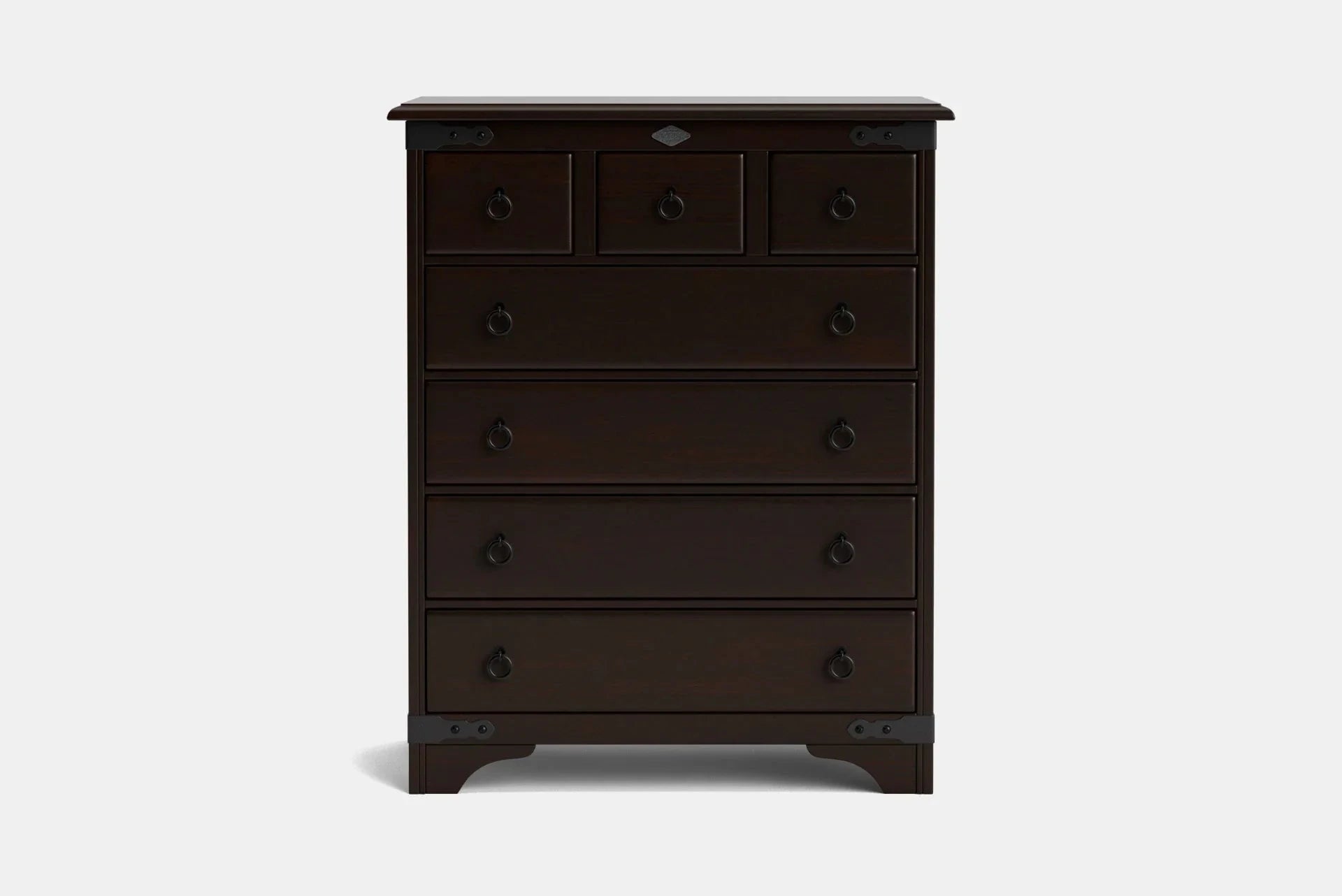 The Nordic 7 Drawer Scotch Chest comprises solid Pine timber with a bevelled edge and forged iron trim, resulting in a timeless look that harmonises with traditional interiors. With seven dovetailed drawers, you instantly gain storage that always looks attractive. From the initial design, right through to our unique, hand rubbed polishing process, this chest has been crafted to bring enduring quality and style to your home.