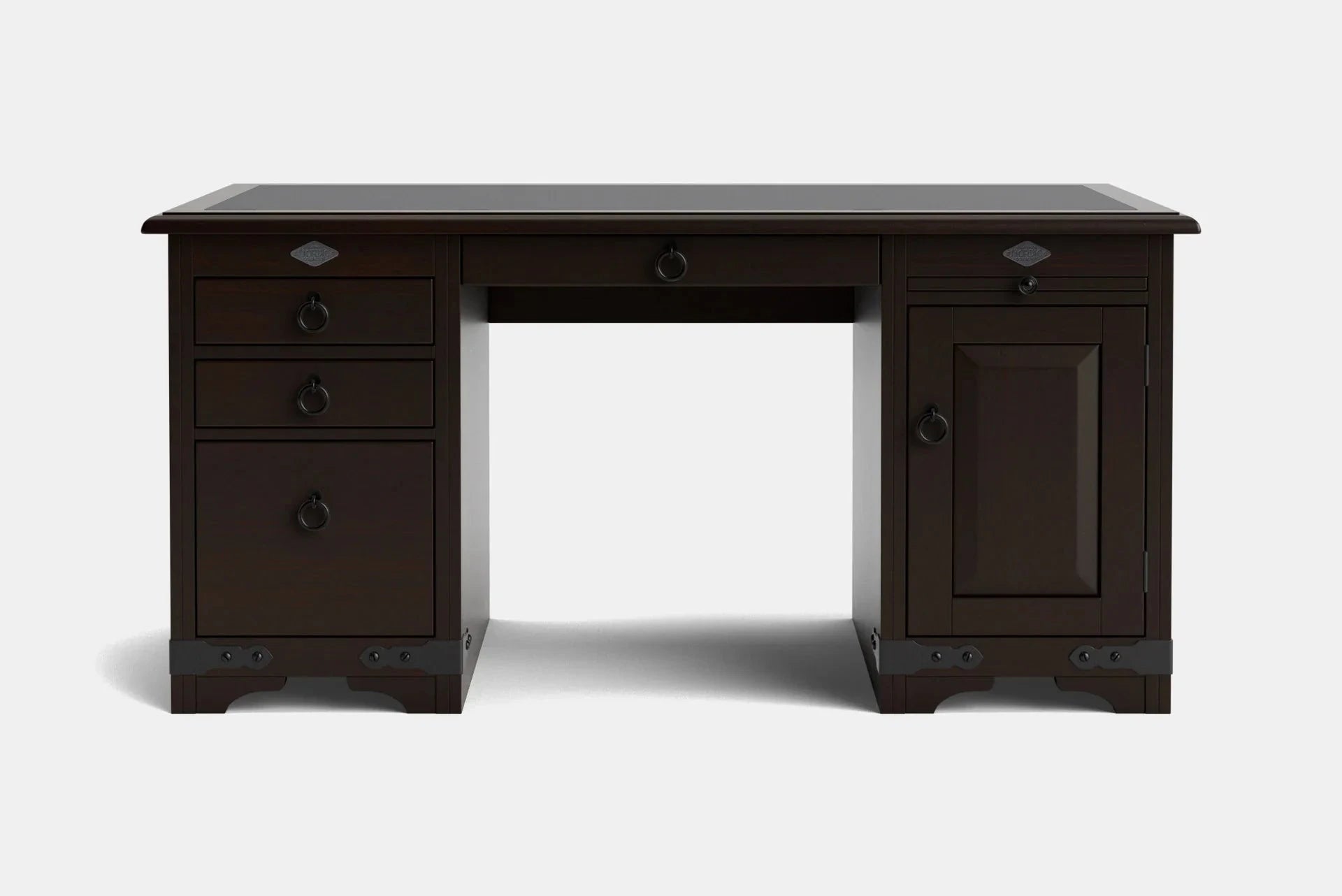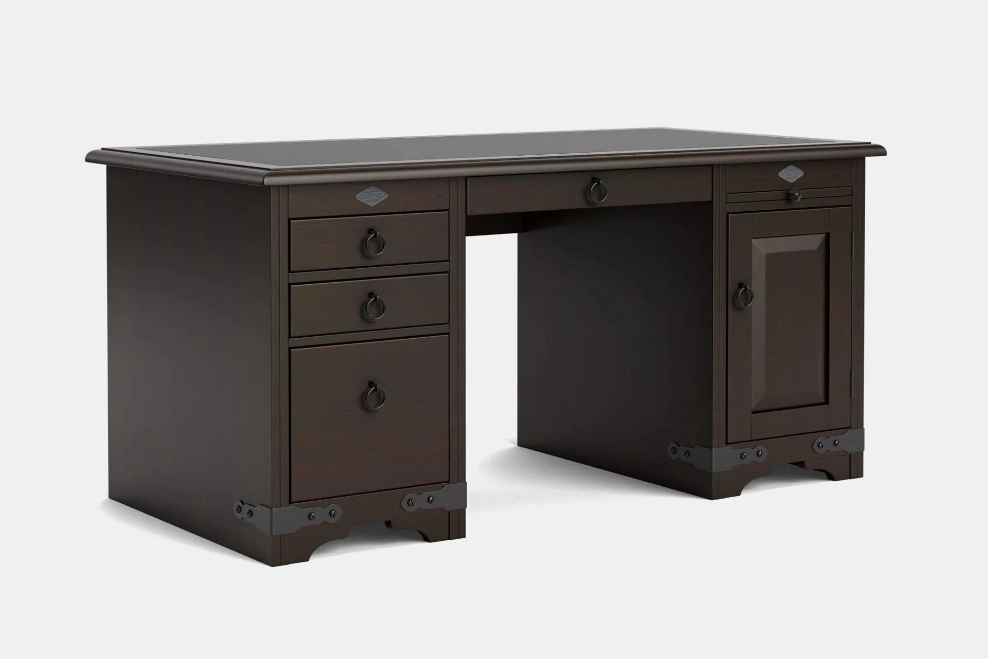 The Nordic President's Desk comprises solid Pine timber with a bevelled edge and forged iron trim, resulting in a timeless look that harmonises with traditional interiors. Your home office will be transformed with this large, reliable desk that includes a cupboard and drawers to keep the space organised. From the initial design, right through to our unique, hand rubbed polishing process, this desk has been crafted to bring enduring quality and style to your home.