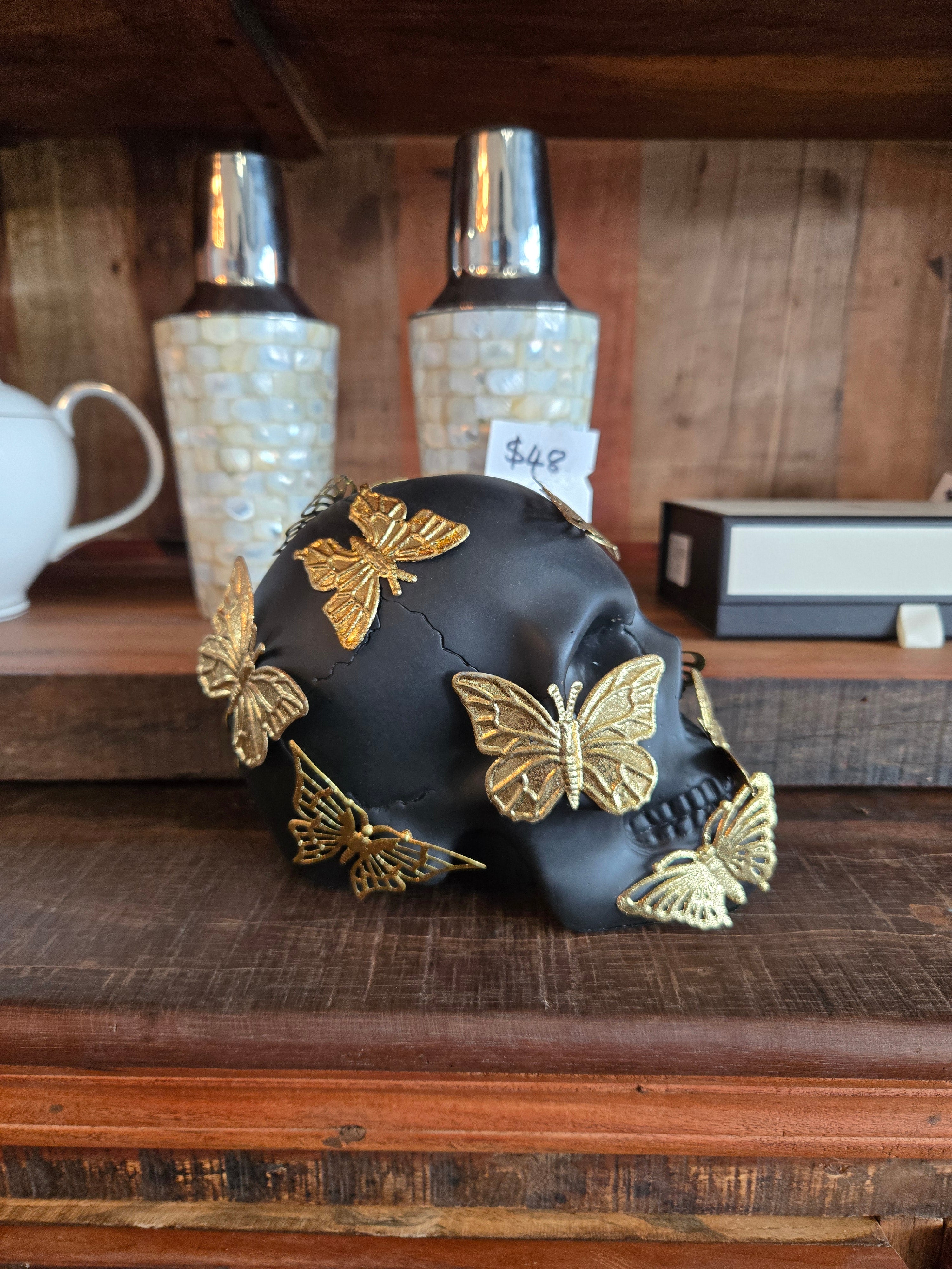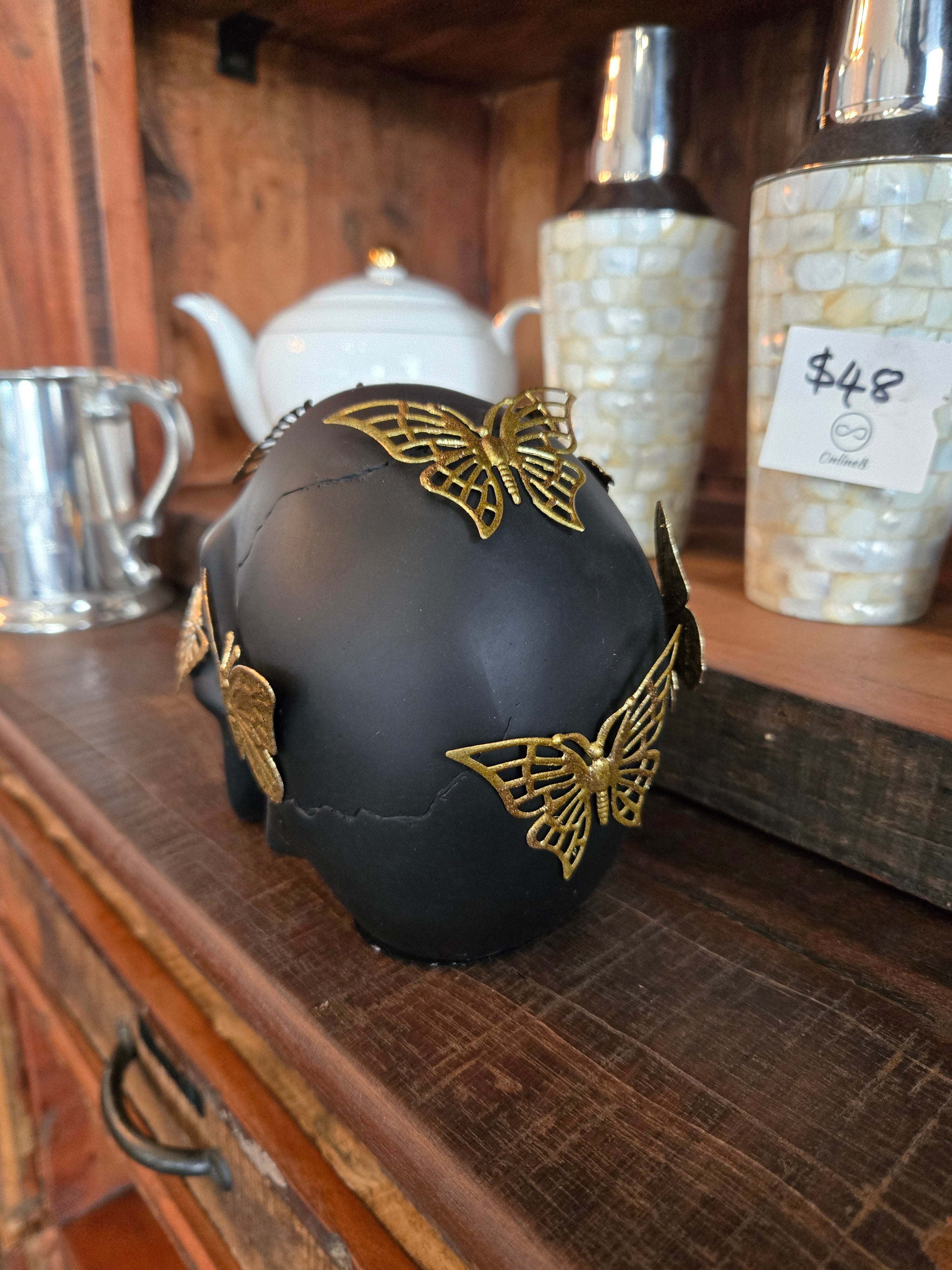 Colour: Black Skull with Gold Butterflies