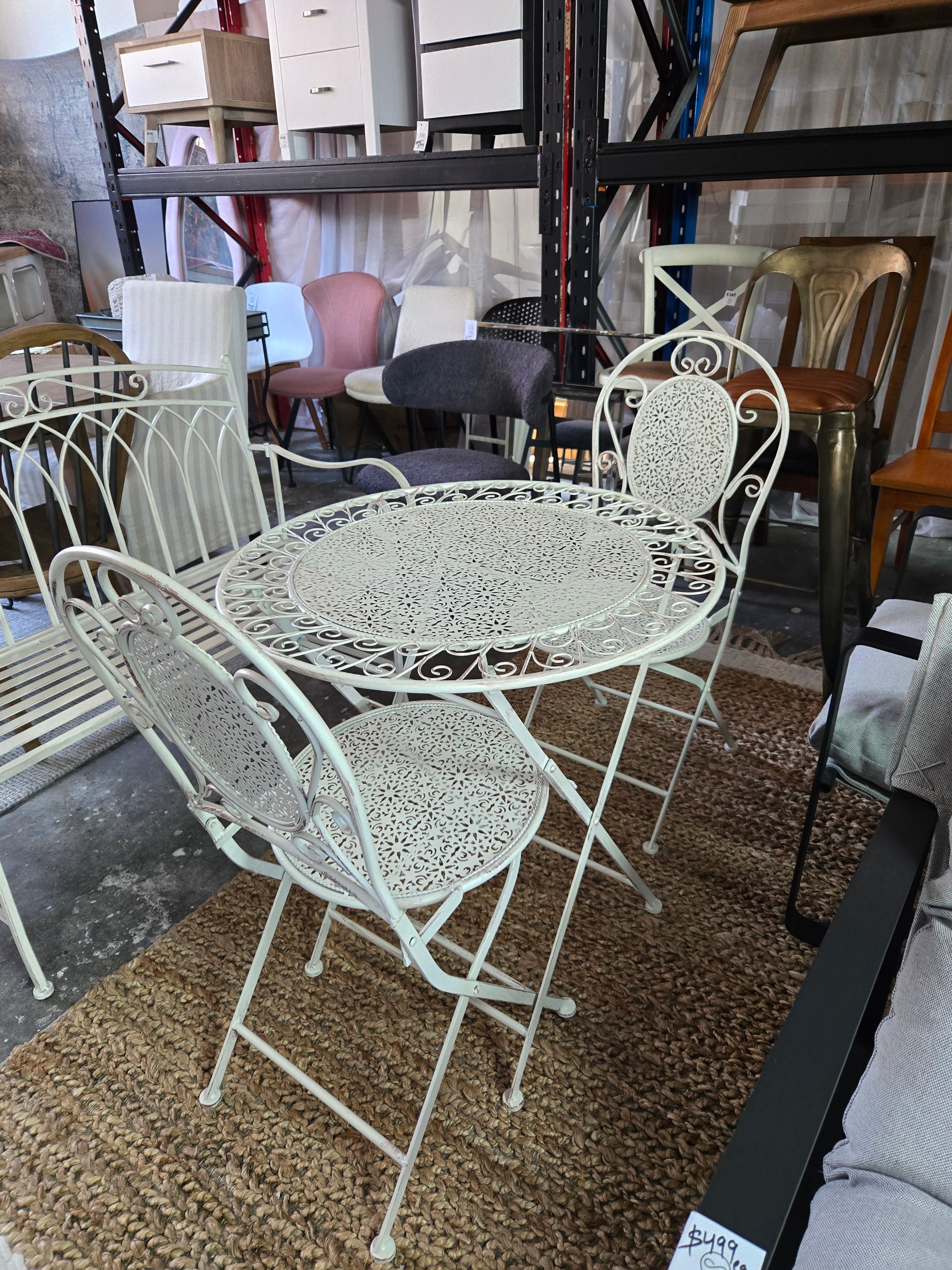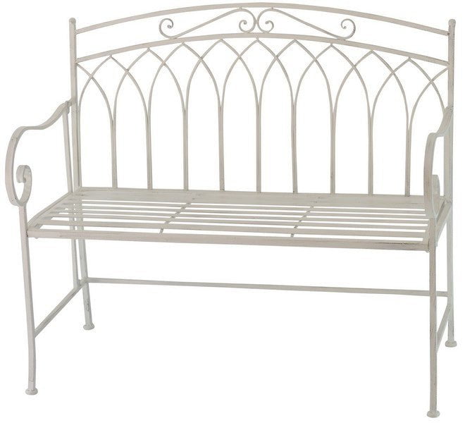 Embrace the outdoors in style with this metal love seat with an antique white finish, ornate detailing on the back and simple design on the legs create an elegant look that will enhance any outdoor area