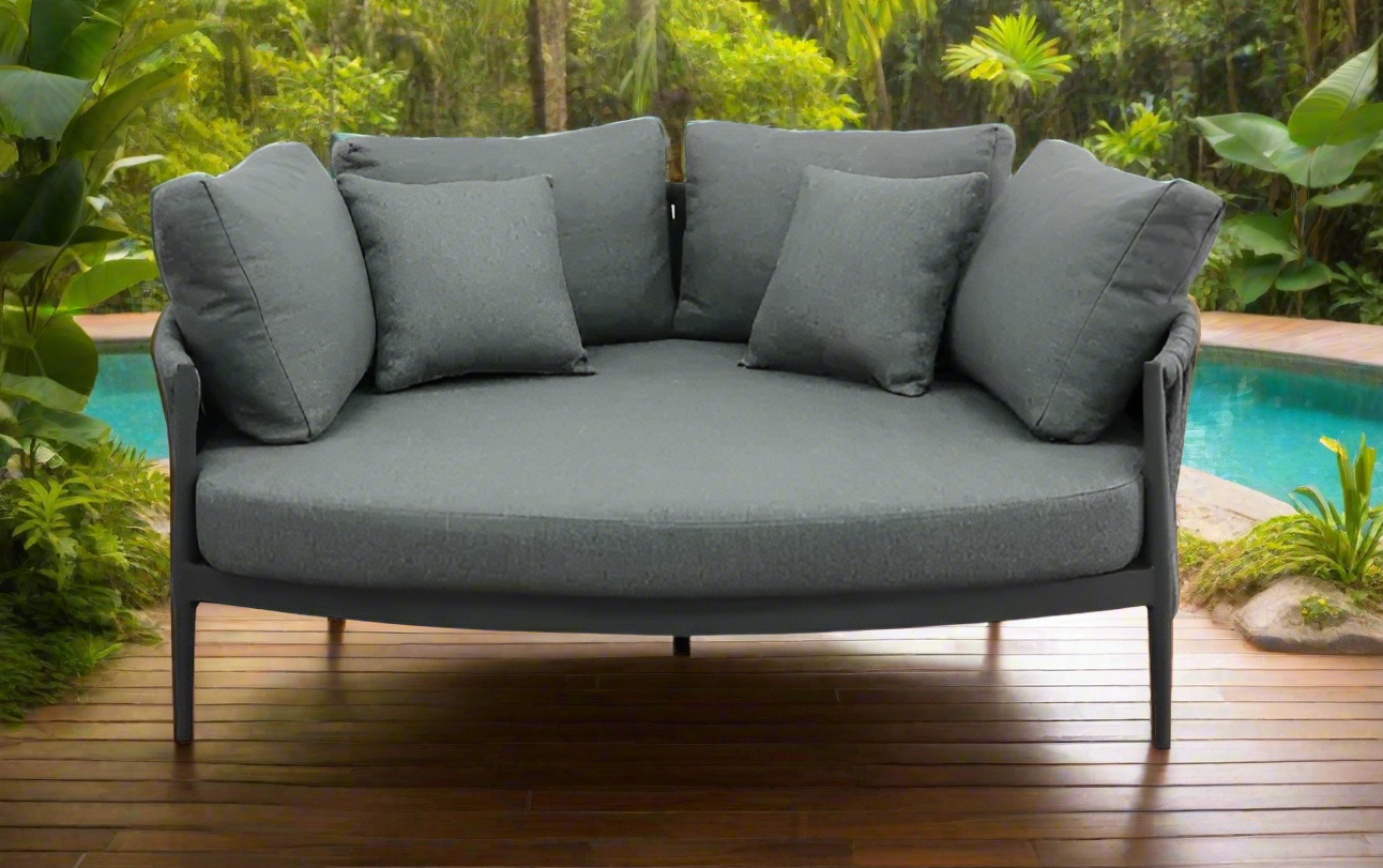 Introducing the Redmond Outdoor Daybed in Charcoal. Measuring at 160x145x70cm, this daybed is perfect for relaxing and lounging outdoors. Its luxurious design and premium materials make it a must-have for those seeking style and comfort. Enjoy the ultimate outdoor experience with the Redmond Daybed.