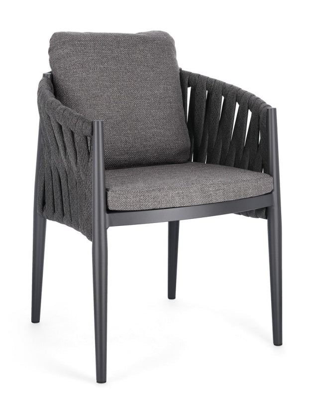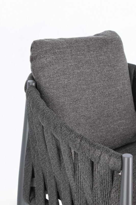Indulge in luxurious outdoor dining with our Redmond chair. The charcoal color adds a touch of sophistication to any setting. Aluminum frame and powder coating ensure durability, while the Tetoron rope weaving and polyethylene filling provide both comfort and style. Water-repellant cushions in olefin fabric complete the lavish experience.