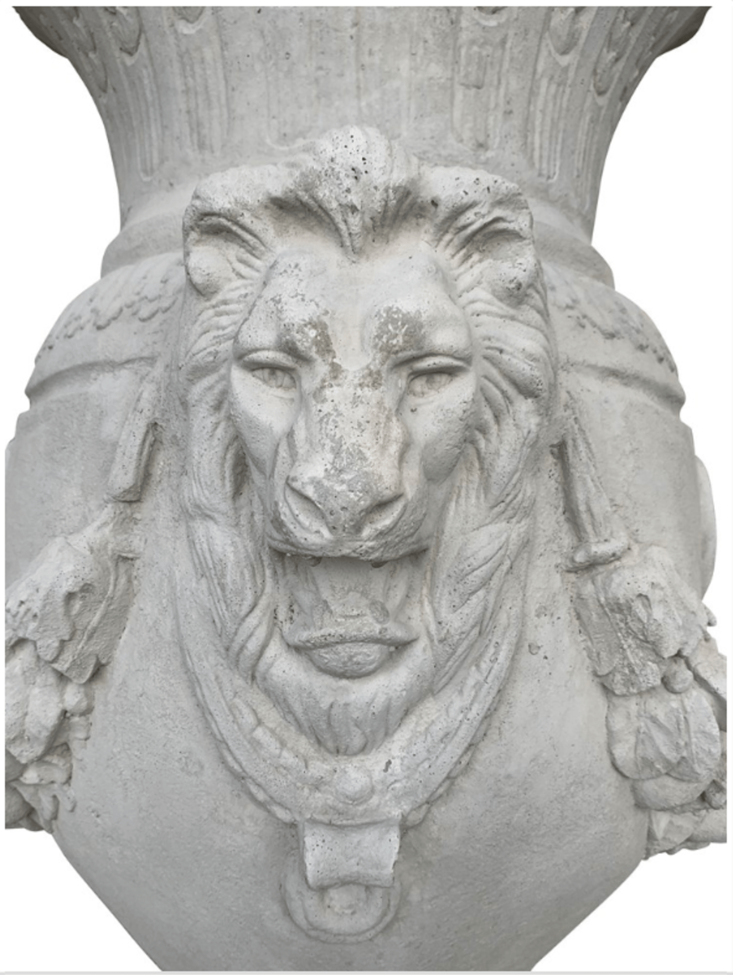 Add a touch of regal elegance to your garden or patio with the Lion Urn & Pedestal in French Lime Wash. Handcrafted with stunning detail, this cast stone urn is not only a beautiful centerpiece, but also a symbol of strength and majesty. Elevate your outdoor space today!