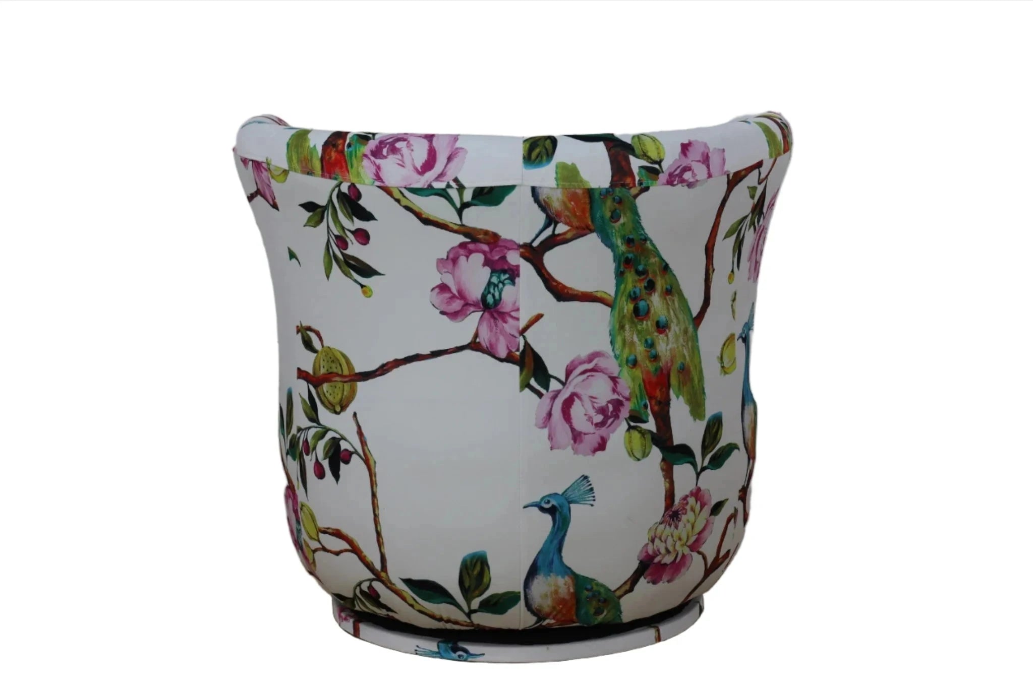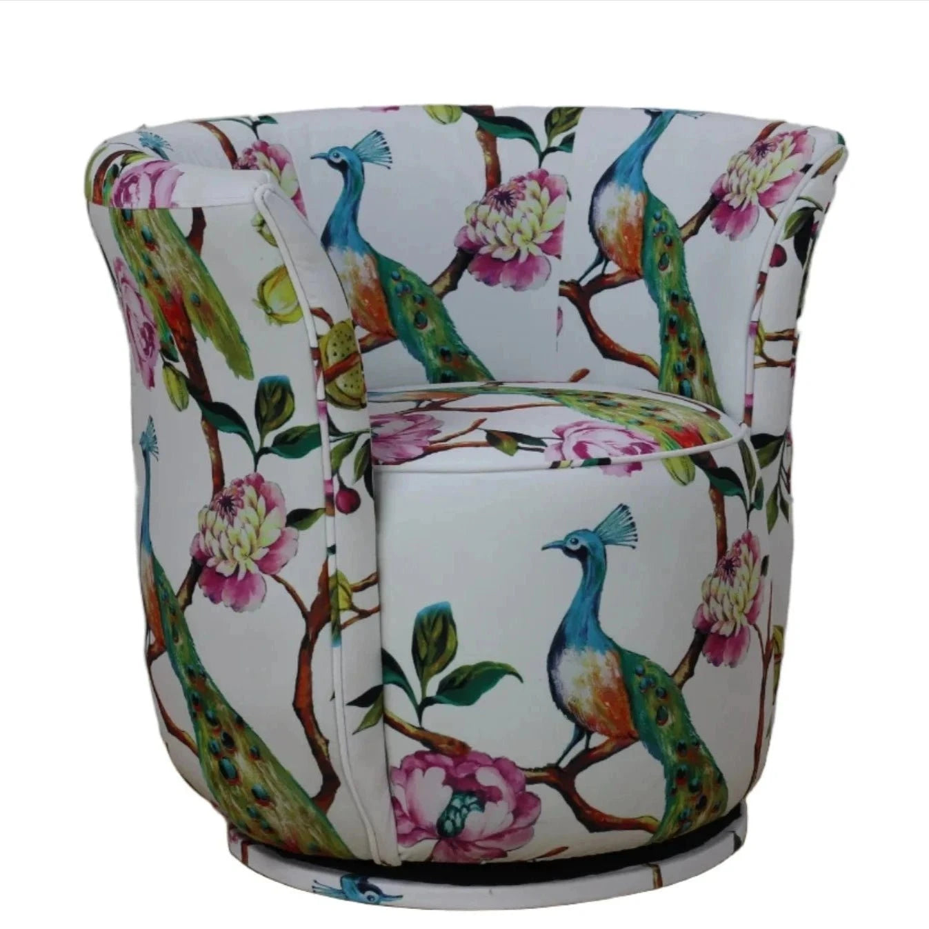 Experience luxury and style with our Peacock Tub Swivel Chair. This sleek and elegant chair not only adds a pop of color to any room, but also allows you to easily rotate and swivel for ultimate comfort and convenience. Upgrade your seating with our Peacock Tub Swivel Chair today!