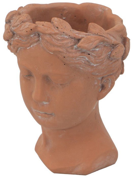 Small décor pieces can really add character and style to any space, the unique design of this terracotta visage head planter make it a functional decorative item.