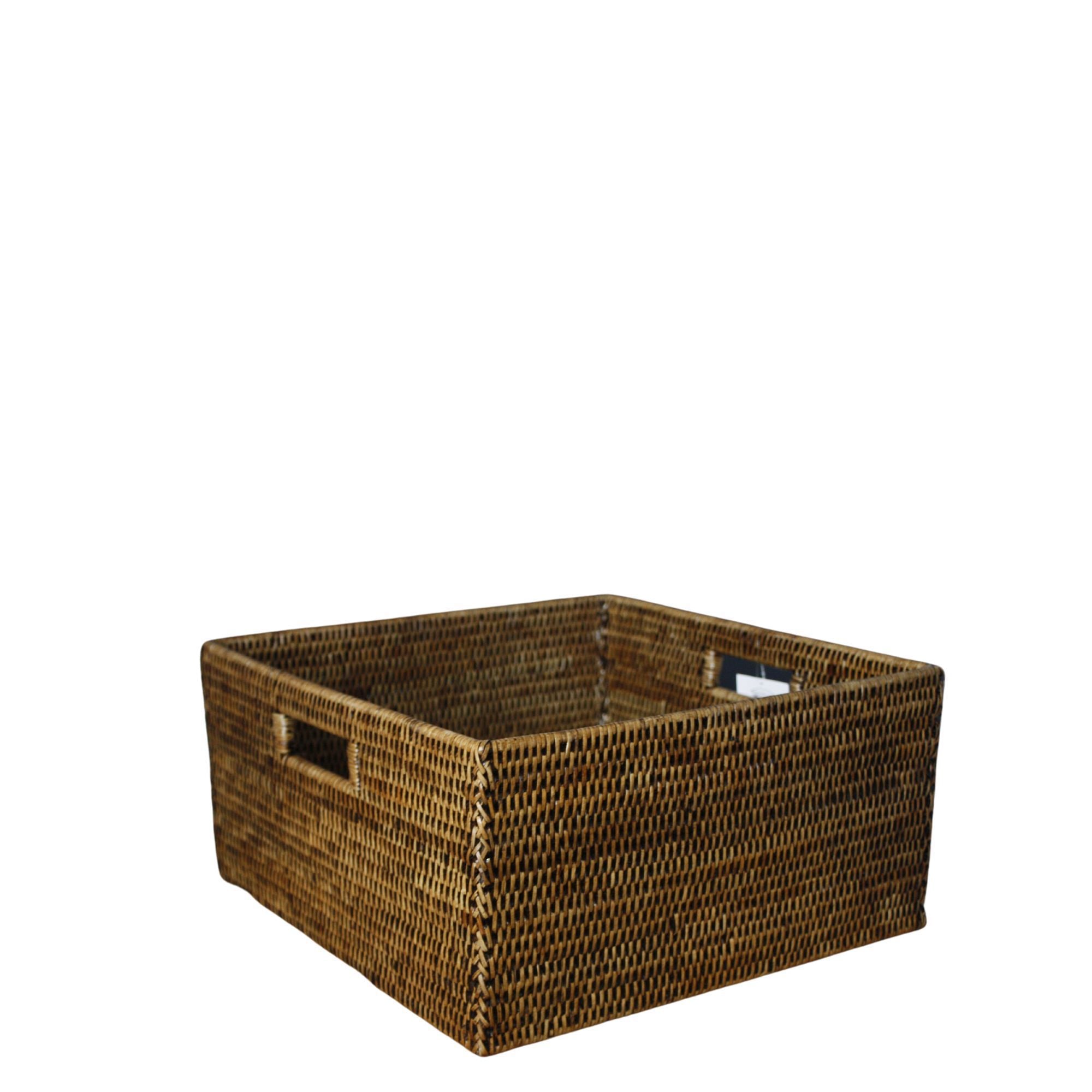 Indulge in elegance and functionality with our Low Domestic Basket With Handgrips 40*20. Crafted with the finest rattan, this basket boasts a rich brown hue and convenient handgrips for easy handling. Upgrade your home organization and storage game with this luxurious addition.