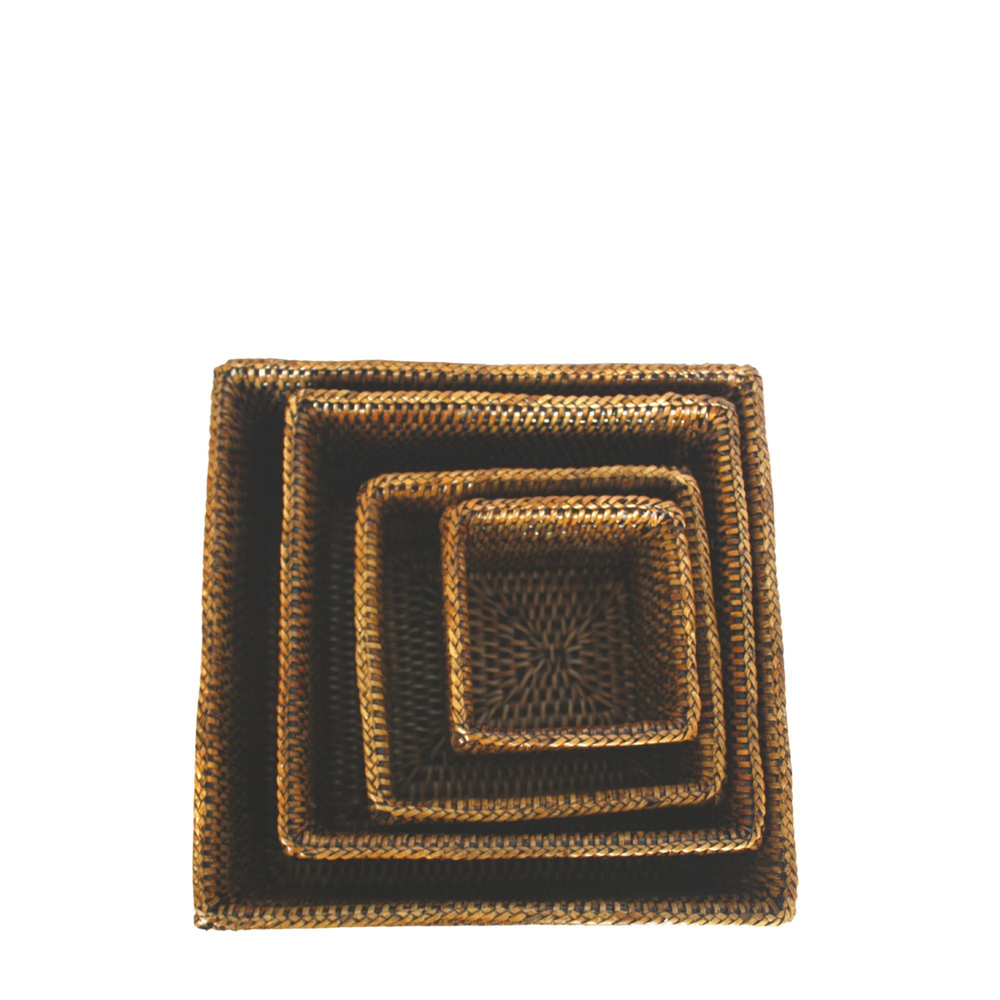 Featuring a stylish rattan design, this set of four stacking boxes offers a modern storage solution ideal for any living space. Durably constructed, these boxes offer strong and stable stacking capability, making them a reliable addition to any home.