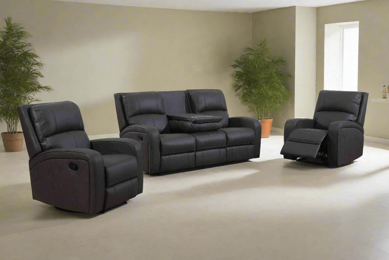 Suite Includes: 3 Seater Recliner with Drop Down Tray and 2 Single Recliners