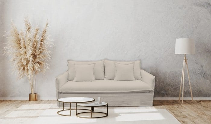 This Salt & Pepper Chantilly Slipcover Two-Seater looks fantastic in contemporary or traditional settings. The fill is a luxurious combination of foam and feather to provide a high level of comfort.