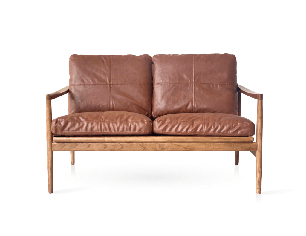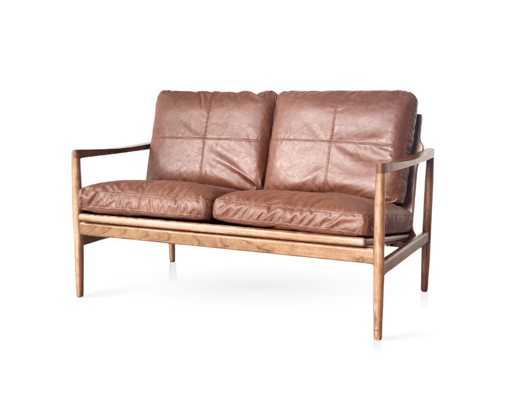 Hans Mid-Century 2 Seat Leather Sofa - Rustic Brown