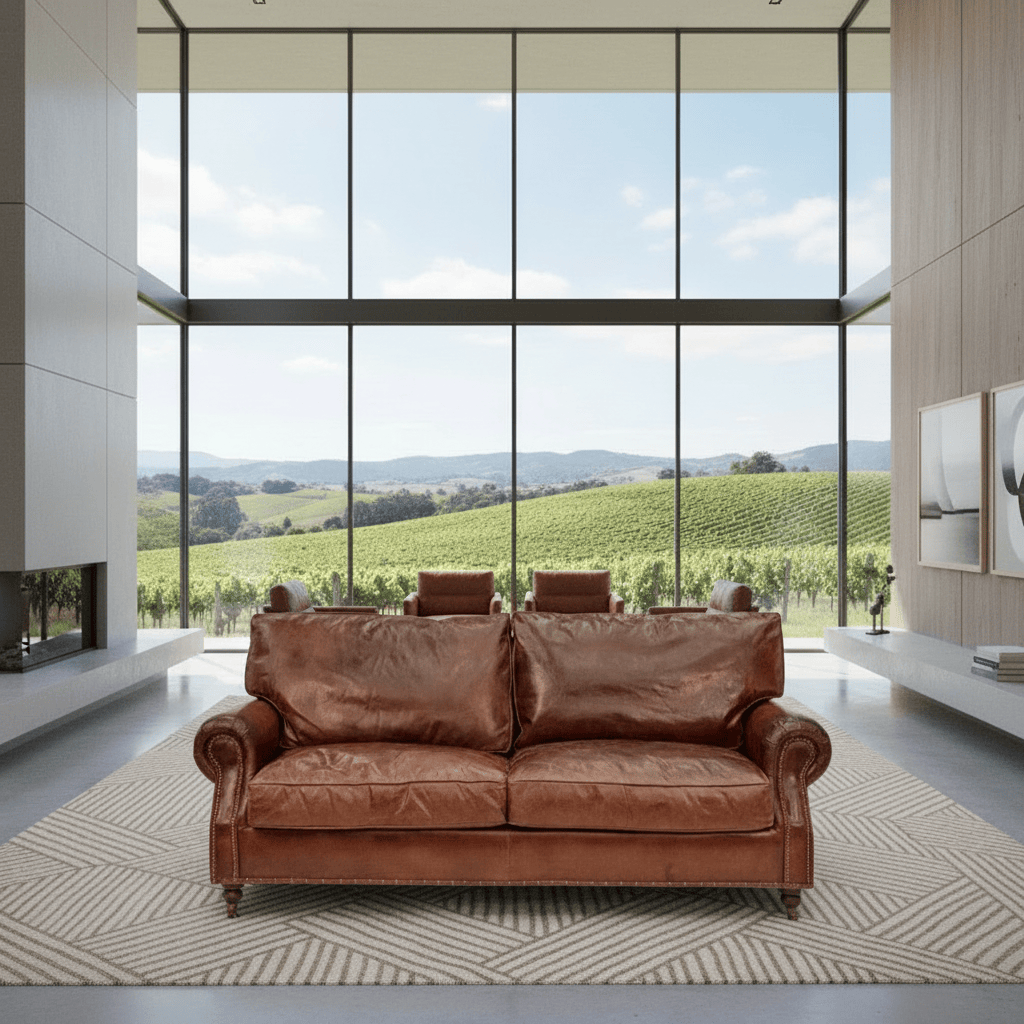 Add some leather luxury to your living room with this Kensington 3 seater armchair. Super comfortable and made from the highest quality top grain leather, the earthy tones and sturdy construction will lend itself to contemporary and rustic inspired spaces.