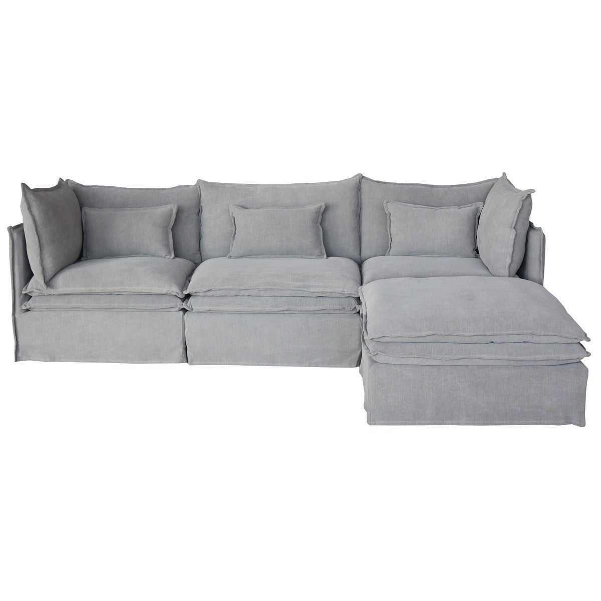 Malta Slipcover Modular Sofa - Crnr+1+Crnr+Ottoman - Grey