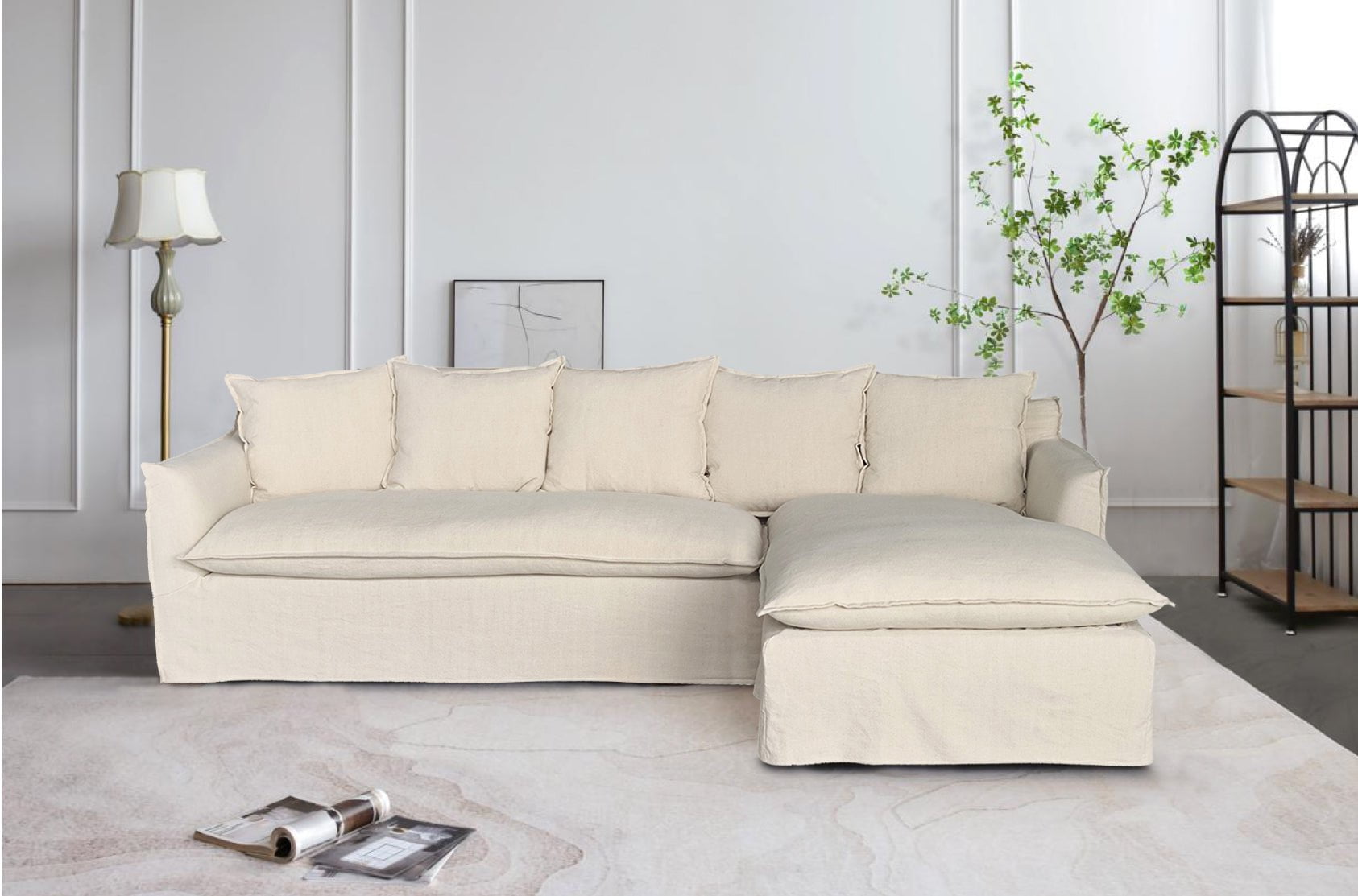 Marsala Slip Cover Sofa with Reversible Chaise - Salt & Pepper