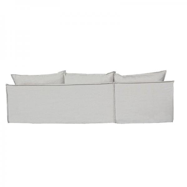The Orlando Chaise Sofa Left is perfect for a modern living space. Upholstered in a durable blend of 70% linen and 30% cotton, this sofa features removable covers for easy cleaning and maintenance. Filled with foam and duck feathers for comfort and support, this item is sure to make a statement.