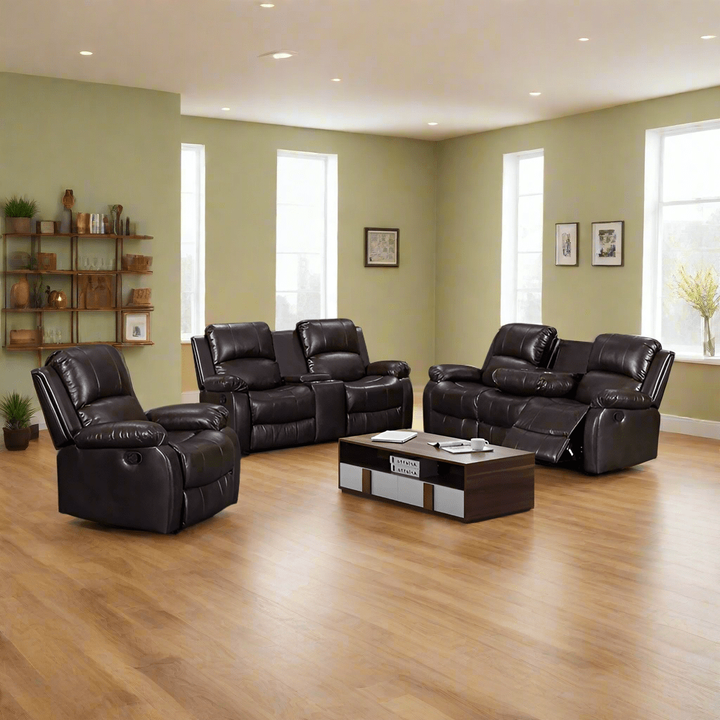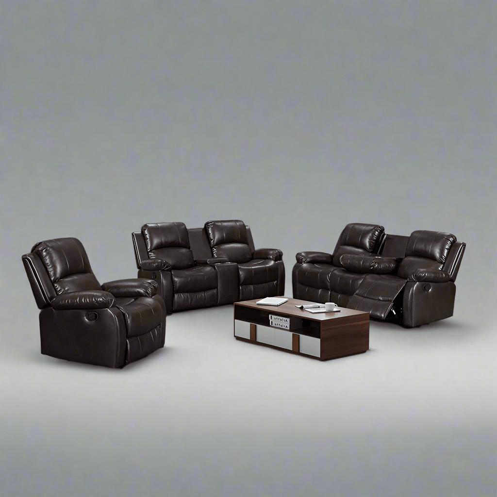 Suite Includes: 3 Seater with Center Console + 2 Seater Recliner with Center Console + Single Recliner