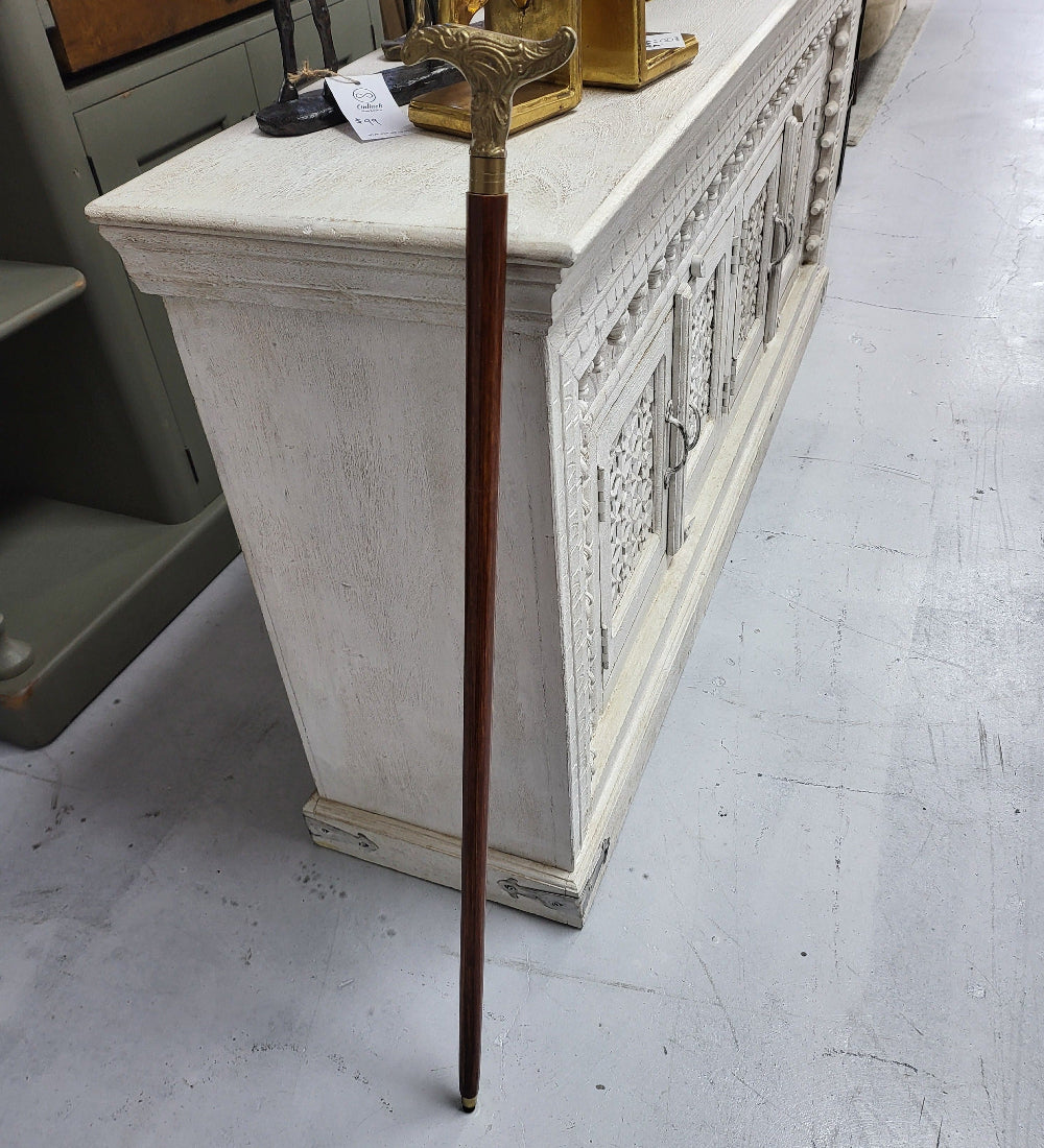 Small décor can really add character and style to any space. The unique design of this wooden walking stick with an ornate brass handle makes it a classic decorative item.