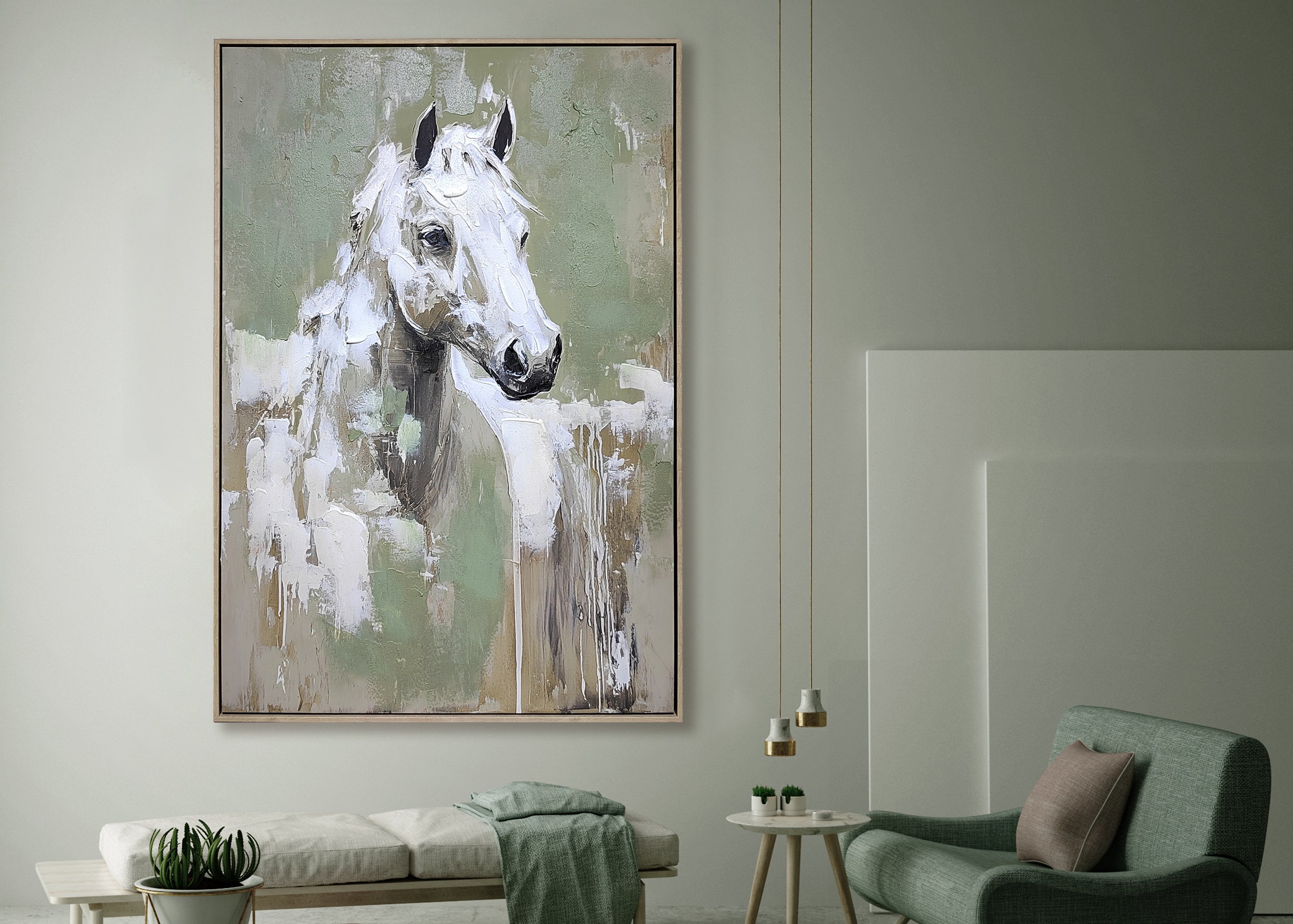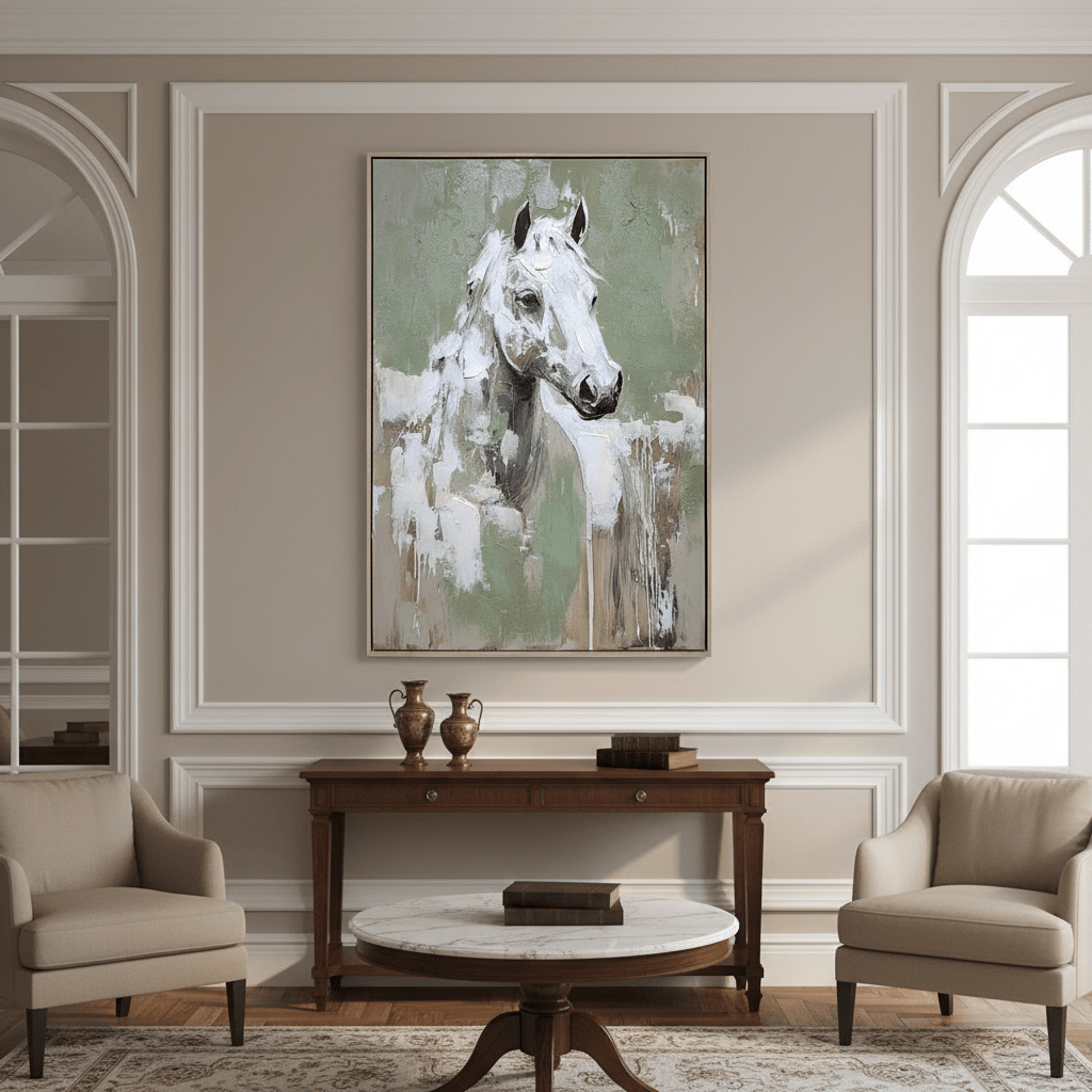 Capture the essence of strength and grace with this Hand Painted Horse Framed Canvas. Its neutral tones and textured finish add subtle depth, making it a versatile piece that enhances any modern, rustic, or classic décor. Perfect for bringing character and a serene touch to your living space, this art piece commands attention while maintaining a calming presence.