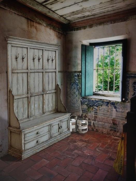 Functionality meets light earthy design with this Chartres two-door and 2 drawer entrance bench. The distressed white timber adds crispness and a neutral sense of antiquity to any space; it lends itself well to bohemian, French country, Hamptons, and beach house themes.