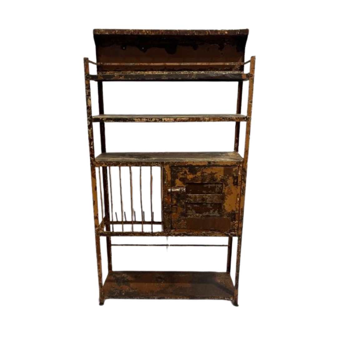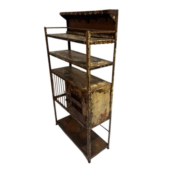 Crafted from solid iron, the rack features open shelving ideal for cookware, pantry staples, or decorative kitchenware. Each mark, scratch, and layer of wear tells a story, making every rack truly one of a kind.