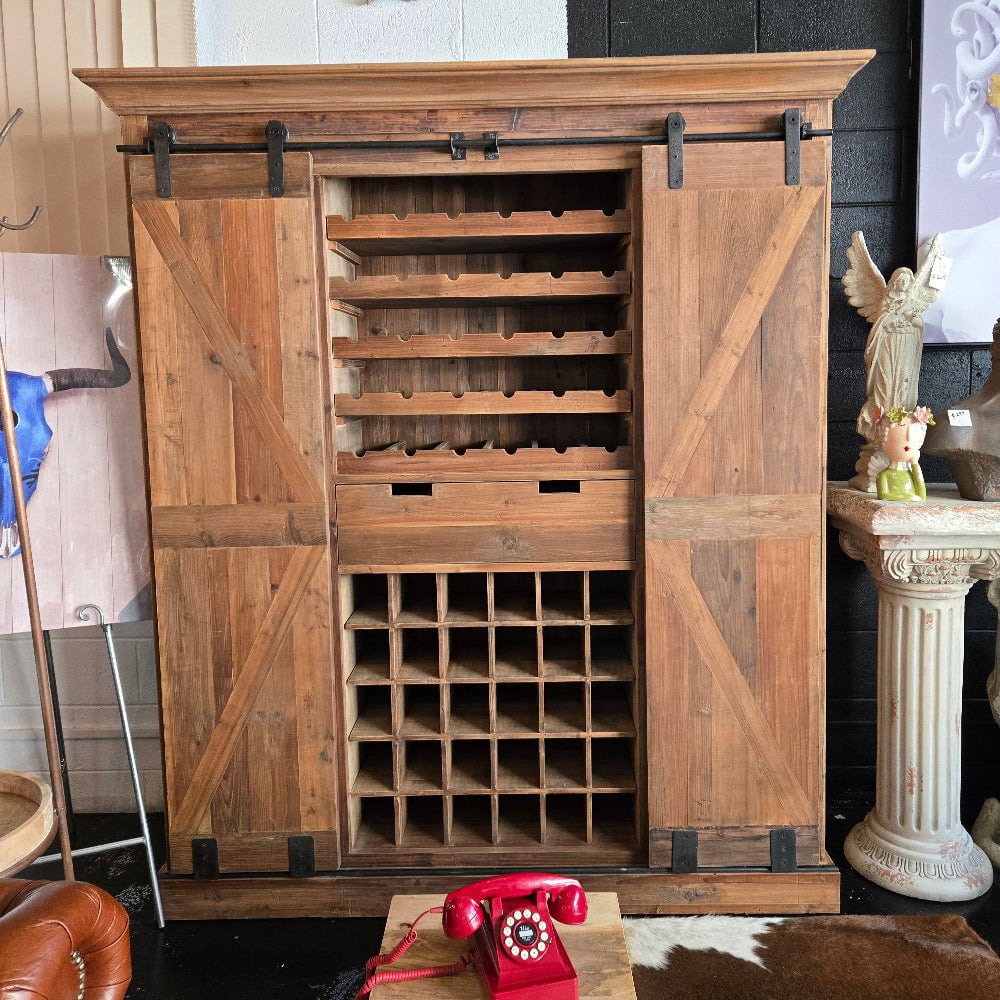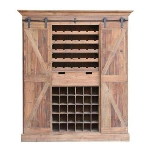 Rustic Reclaimed Pine Bar & Wine Unit with Sliding Doors
