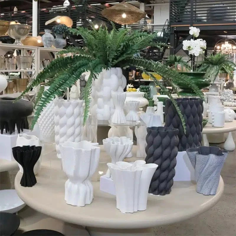 Enhance your home décor with the 3D Vase Catalina. Made from waterproof 3D-printed porcelain, its sleek white finish and modern geometric design make it perfect for displaying flowers, plants, or as a stylish standalone accent piece.