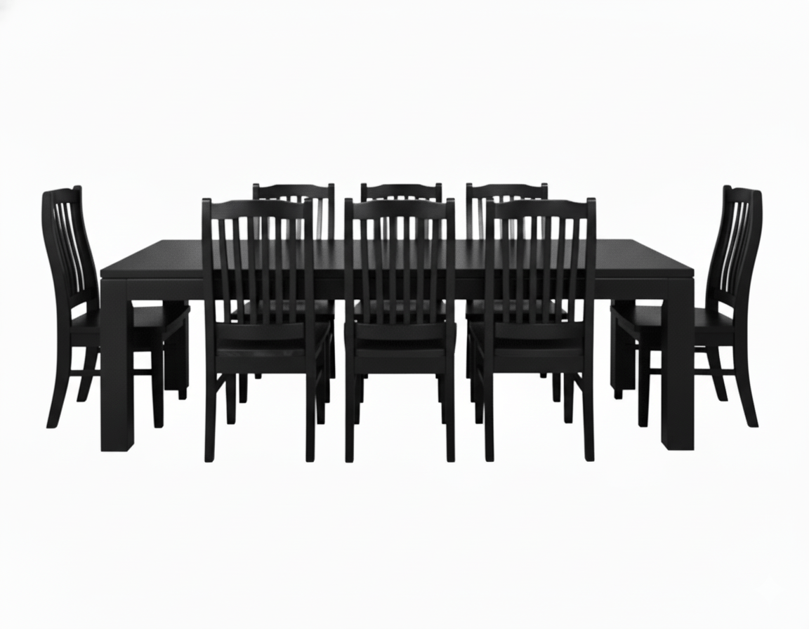 Generous Seating for Eight: Comfortably accommodates eight guests, featuring three sleek chairs along each side and a matching armless chair at each end, ensuring everyone has a place at your table.