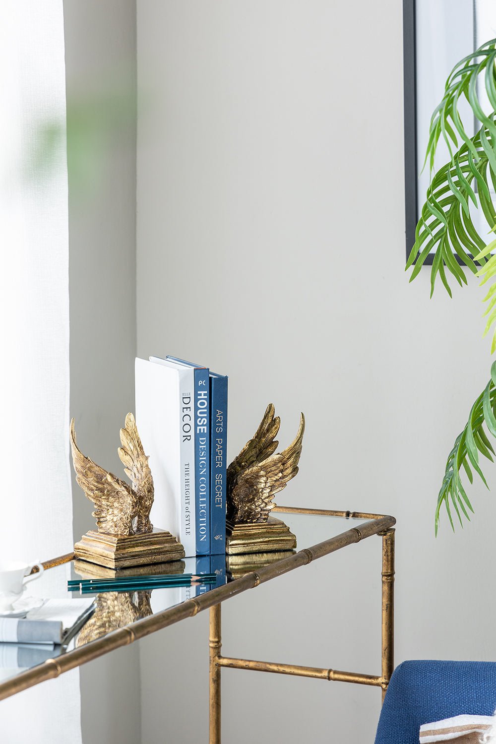 Elevate your bookshelf with this exquisite set of two gold angel wings bookends, blending elegance and spiritual symbolism. Crafted with intricate feather detailing and a rich metallic finish, they not only keep your books neatly in place but also add a captivating decorative touch. Ideal for classic, romantic, or eclectic interiors, these bookends transform any space with their graceful presence and timeless charm.