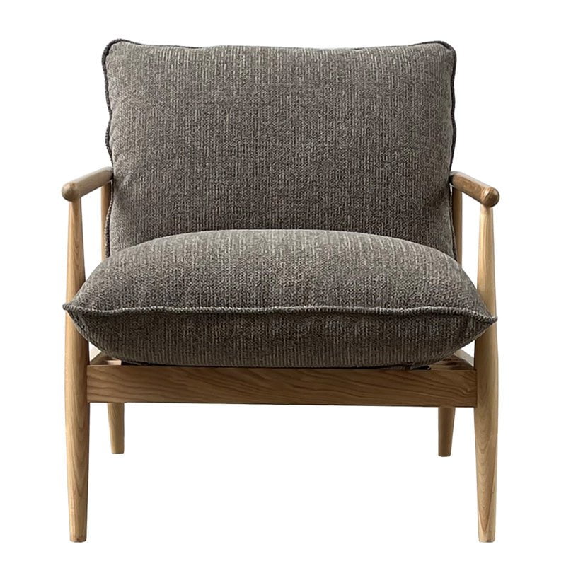 Experience comfort and elegance with the Antonio Armchair. Featuring a light oak frame and water resistant polyester fabric, this chair provides both durability and sophistication. With its feather fill and rope details, it is the perfect addition to any living space.