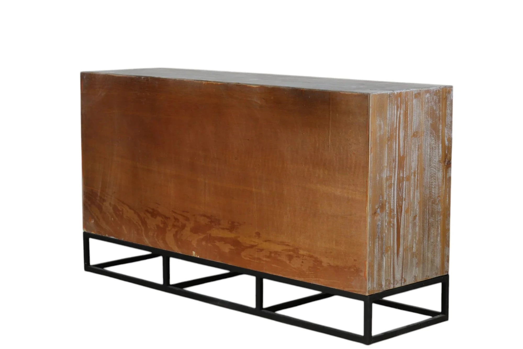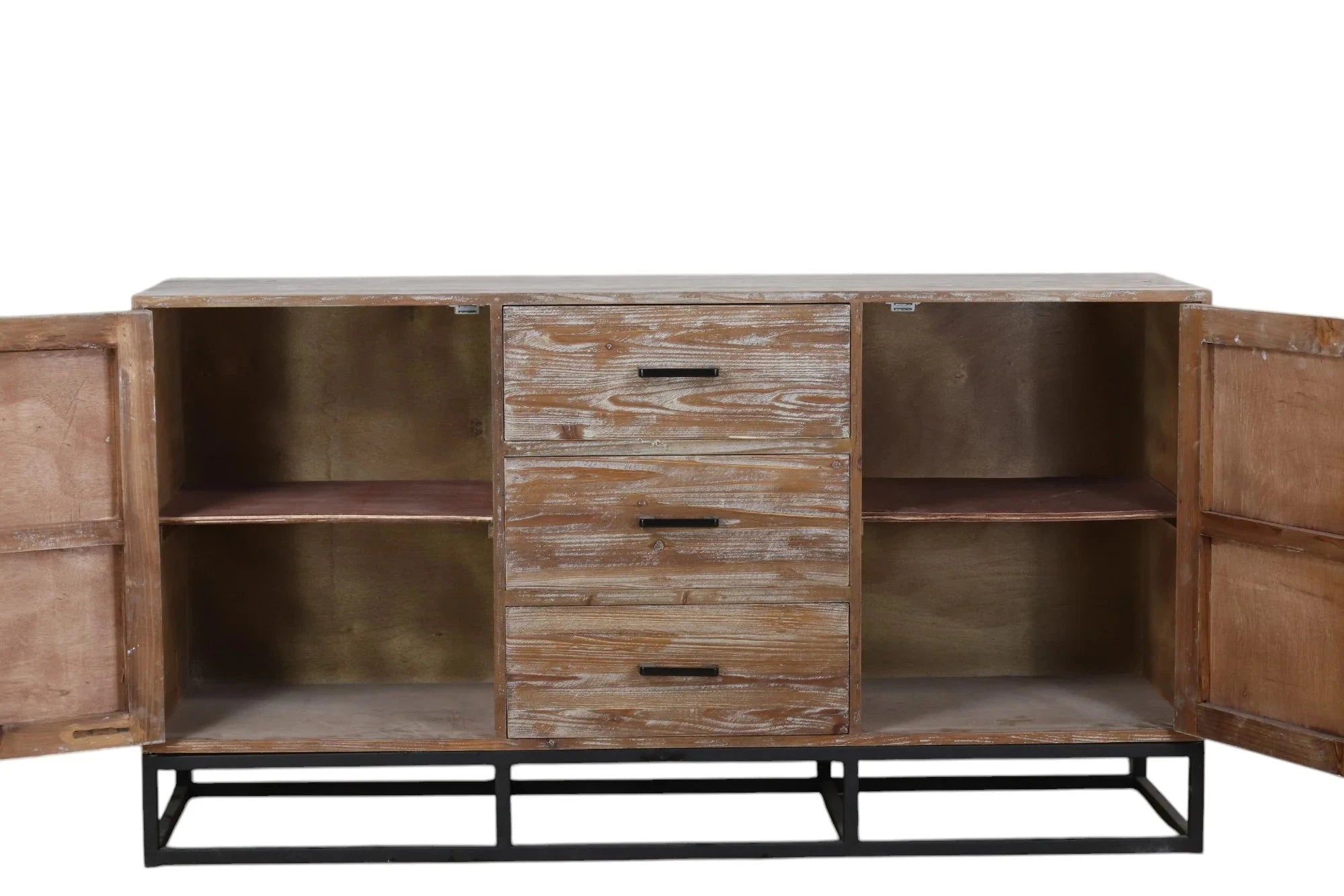 Indulge in the sophistication of the Arturo 3 Drawers 2 Door Buffet Table. Made of recycled Fir wood, this fully assembled unit boasts 2 doors and 3 drawers. Its unique markings and natural movements add character and charm, elevating its features to luxurious elements rather than flaws.
