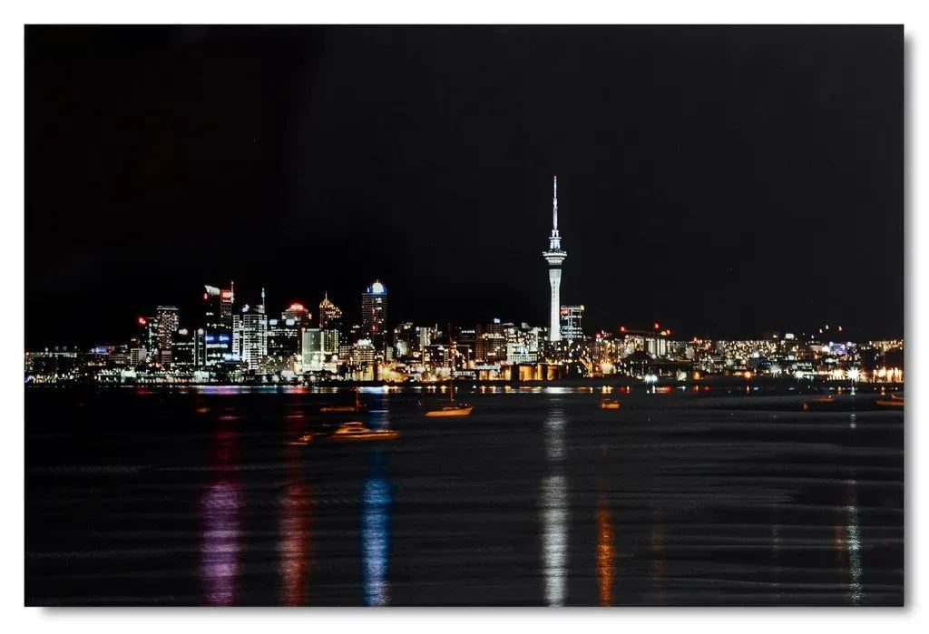 It will inspire in any Auckland home, restaurant, or office with its coloured array of lights against the black night sky, and reflection in the water of the Auckland Harbour.