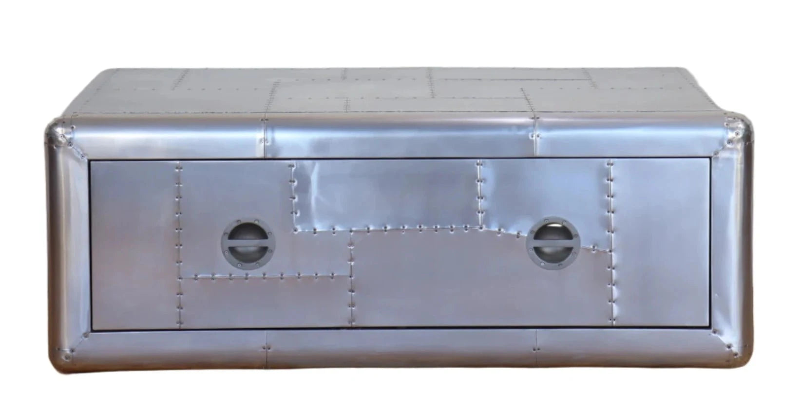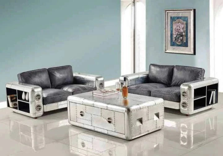 Indulge in the grand craftsmanship of the Aviator Coffee Table. Handcrafted with a unique blend of aluminum and wood, this stunning master piece will elevate any room. Experience the perfect blend of style and quality, all in one exquisite piece.