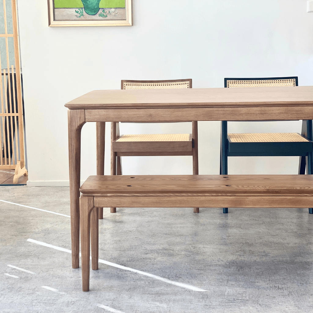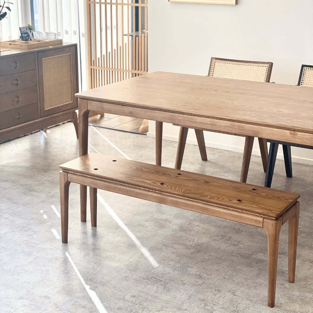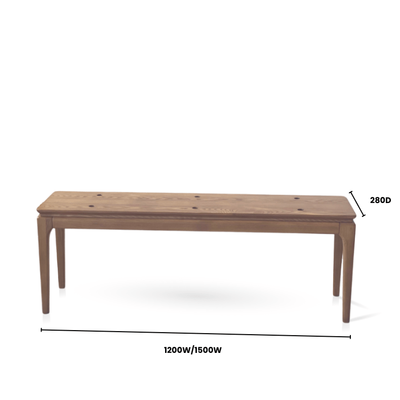 Introducing the Baur Bench - 1200, the epitome of luxury and sophistication. This stunning bench is handcrafted from premium American FAS grade ash wood in a rich walnut finish, adding warmth and elegance to any modern home. With its clean lines and minimalist design, it offers versatile seating for your dining, entryway, or living area, perfectly complementing the matching Aikido dining table. Impress your guests and elevate your space with this exquisite piece.