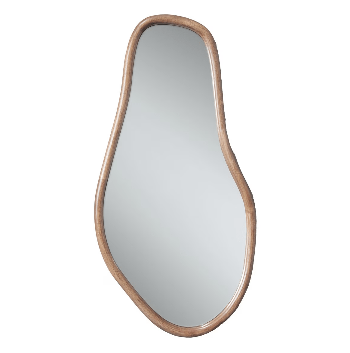 Add artistic flair to any space with the Baxton Wooden Squiggle Wall Mirror. The playful curves and natural materials create a striking design statement, while the unique, flowing frame showcases the warmth and texture of wood. Perfect for living rooms, entryways, or bedrooms, this mirror combines style and function for a sophisticated and exclusive touch.