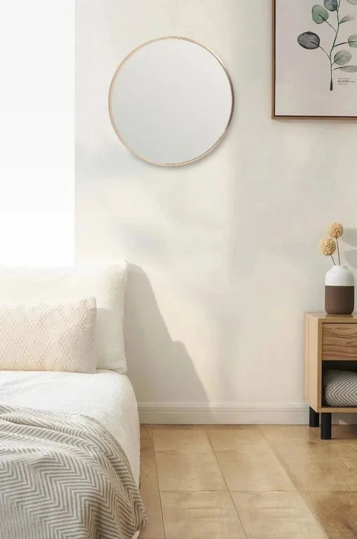 Sleek and modern, this simple round mirror draws attention with its striking shape. Its minimalistic style makes this a very versatile styling piece.