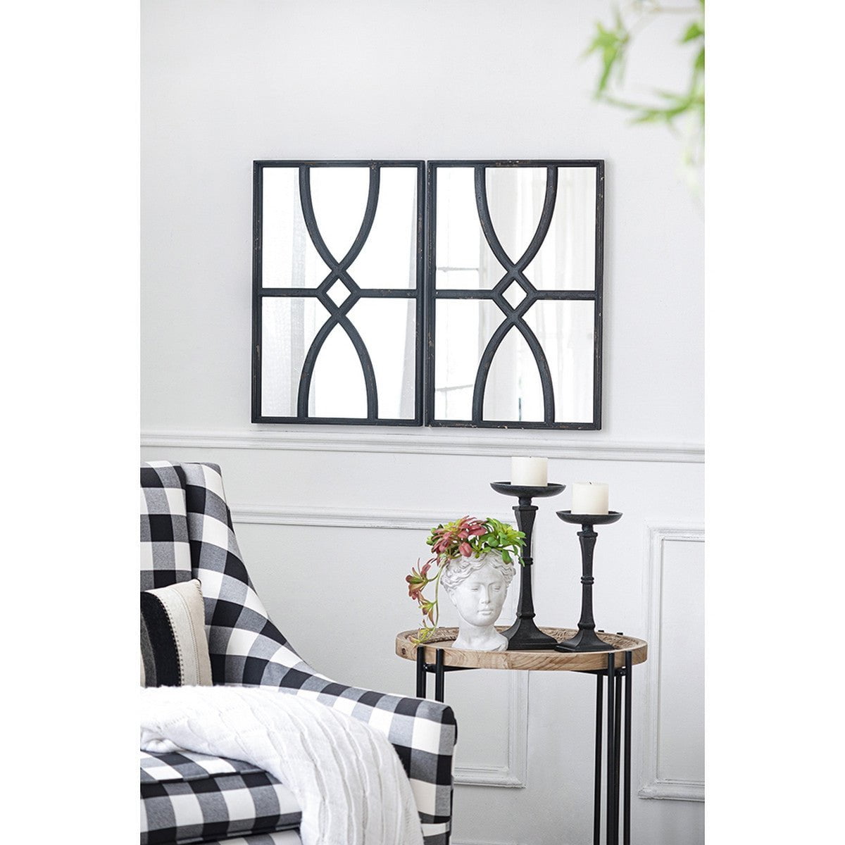 Bring a touch of elegance to your home with this exquisite set of two carved wall mirrors. The ornate black fir wood frames create a rustic touch, while the mirror glass serves as a reflection of your own exquisite style. This beautiful set is the perfect accent to bring warmth, texture, and sophistication to any room.