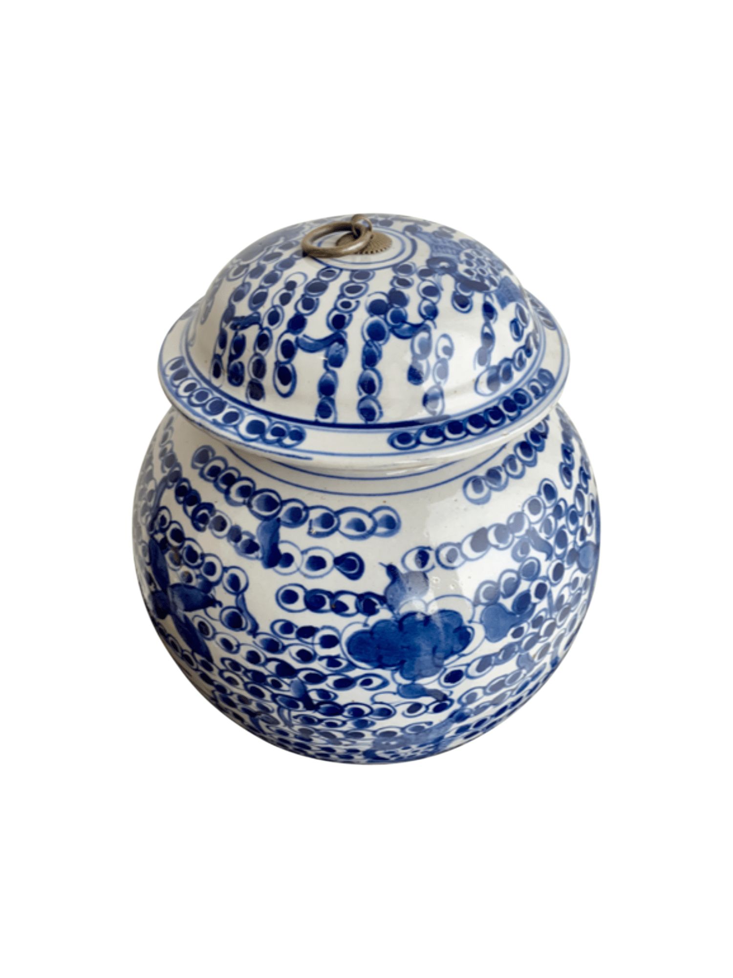 Elevate your home decor with our stunning Blue/White Squat Ginger Jar. This jar features a striking blue and white design, topped with a brass ring lid for a touch of elegance. Add a pop of color to any room and store your essentials in style.